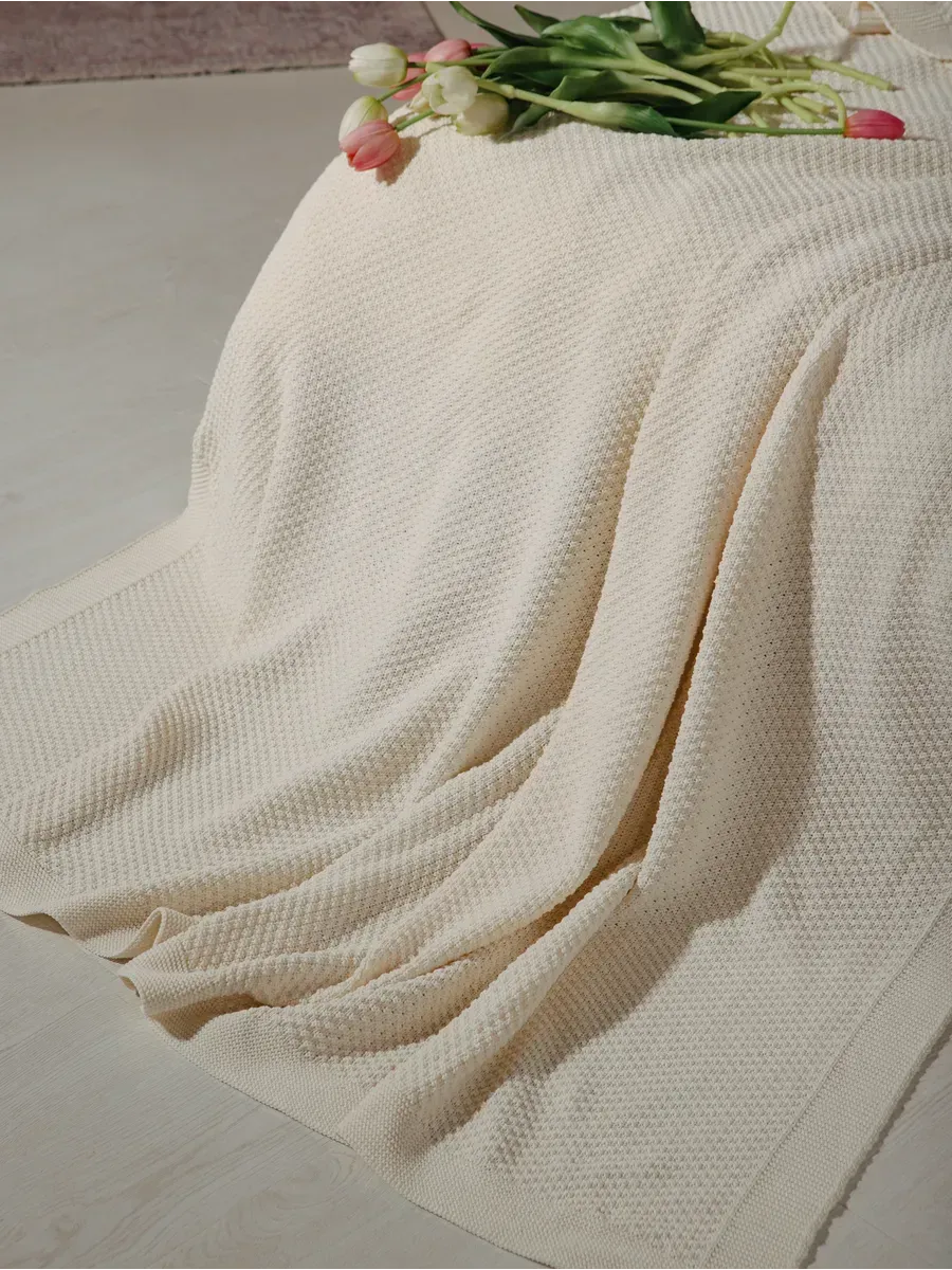 Вязаный плед из хлопка / Одеяло детское / Плед на кровать / детский вязаный плед из хлопка / одеяло летнее