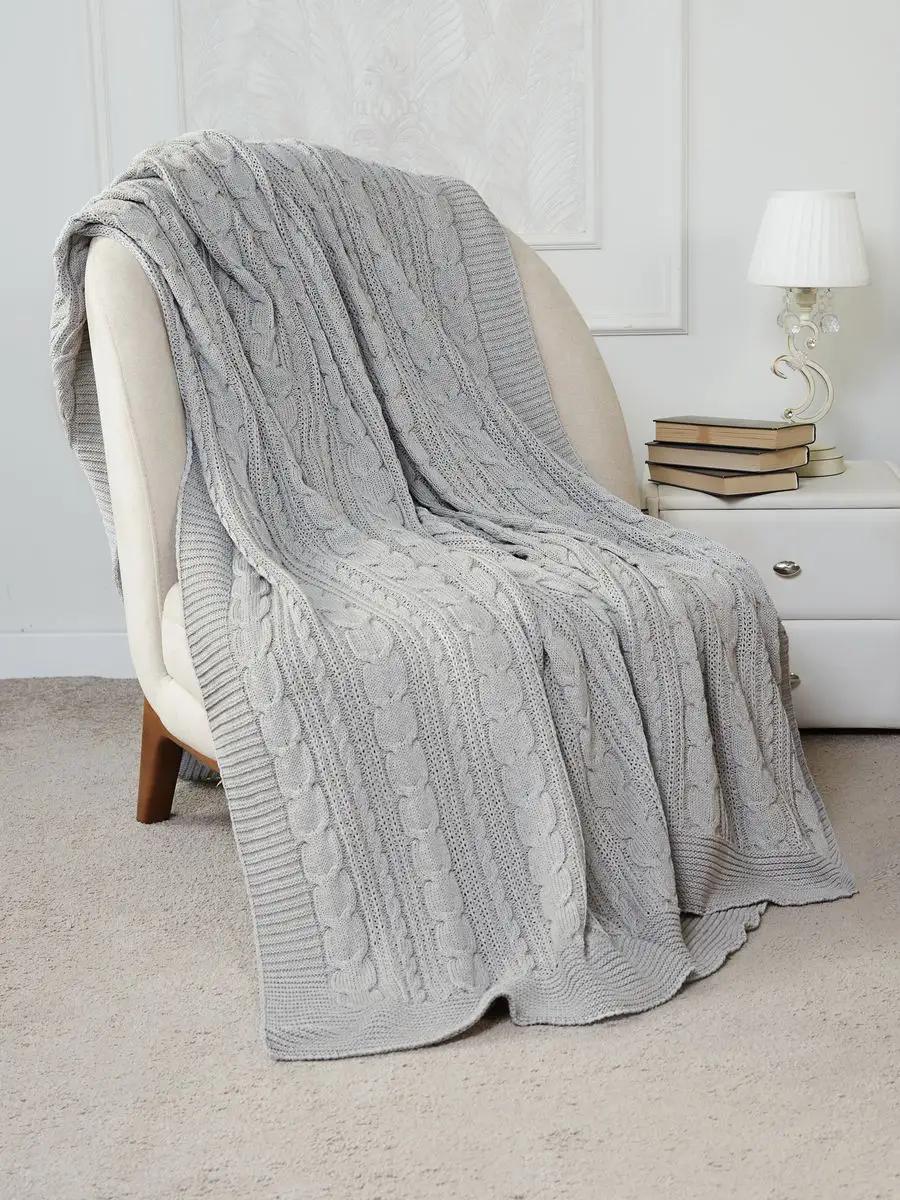 Плед 180х220 на кровать диван покрывало вязаный Хлопок 100 %