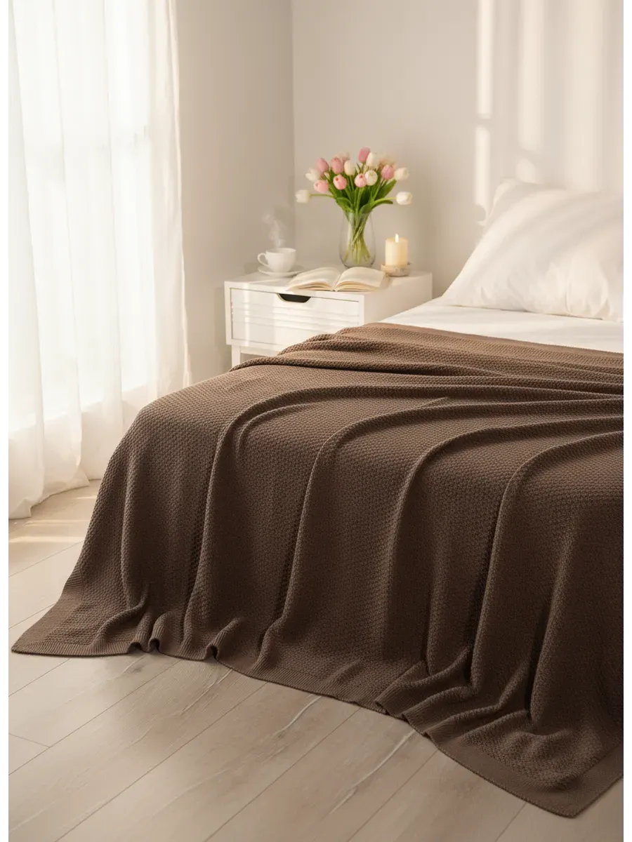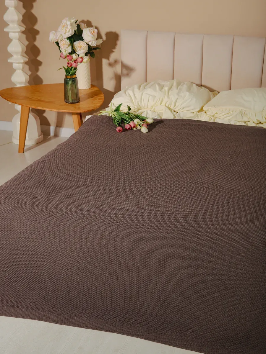 Плед 180х220 на кровать диван покрывало вязаный Хлопок 100 %