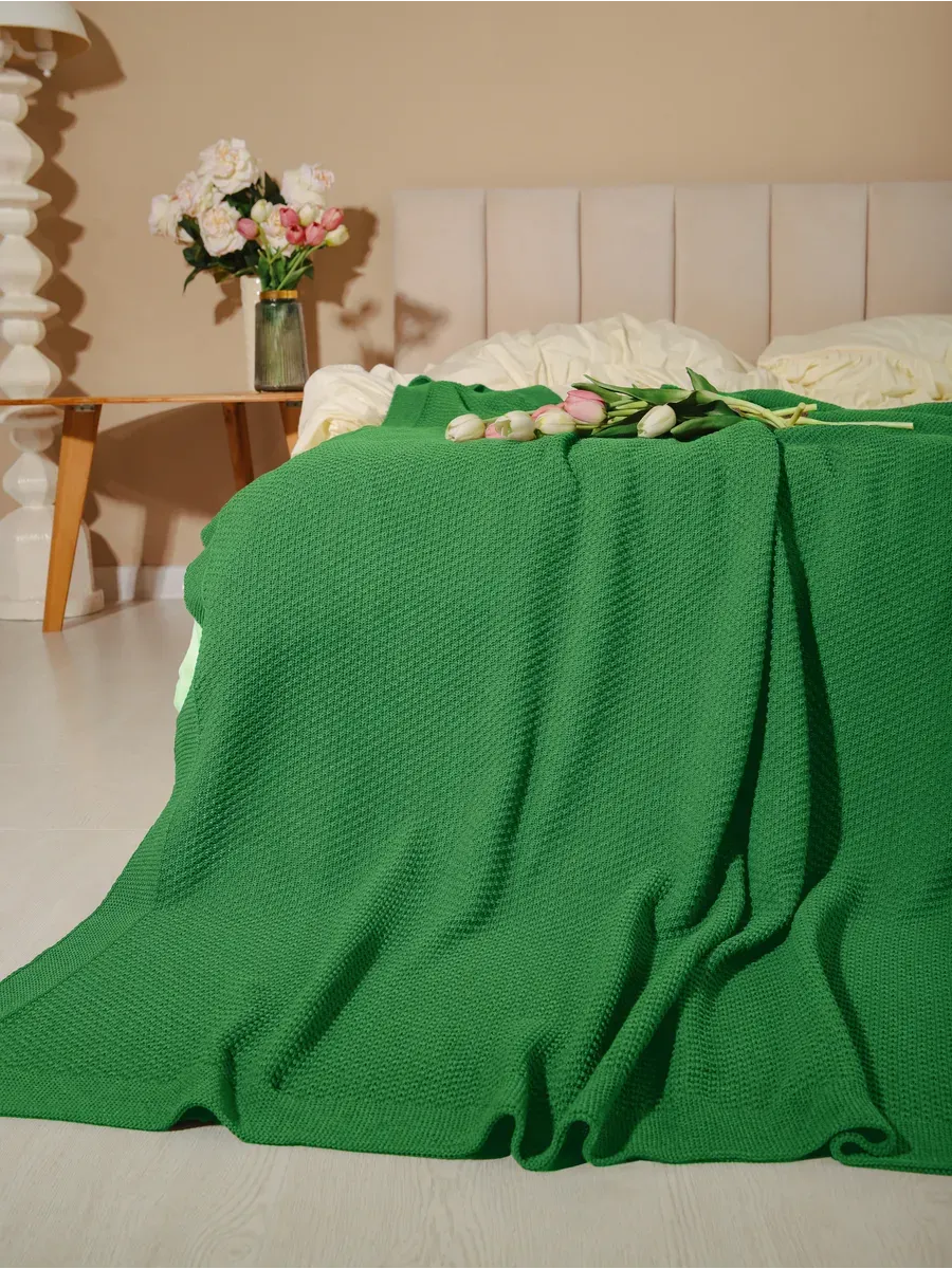 Плед 180х220 на кровать диван покрывало вязаный Хлопок 100 %