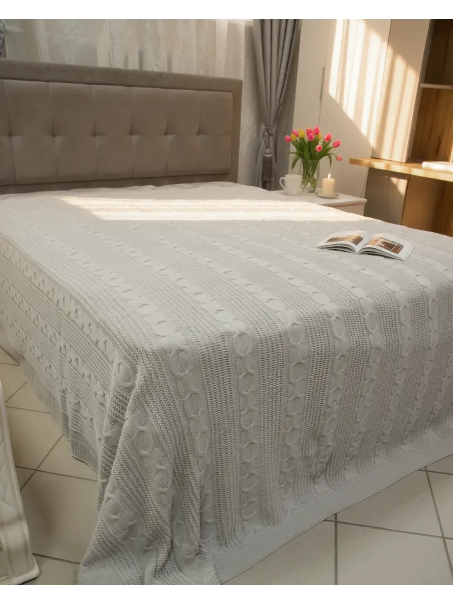 Плед 200х220 на кровать диван покрывало вязаный Хлопок 100 %