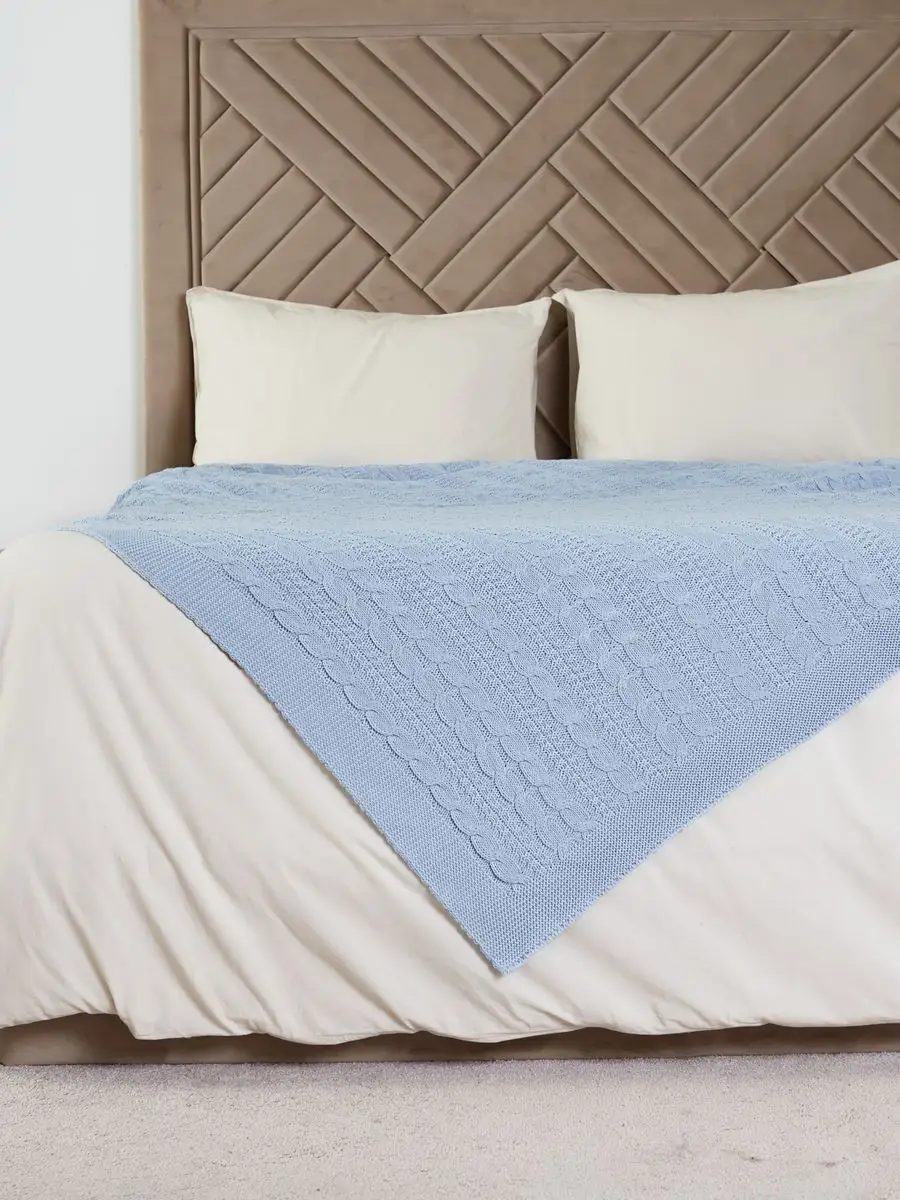 Плед 200x220 на кровать диван покрывало вязаный хлопок 100%