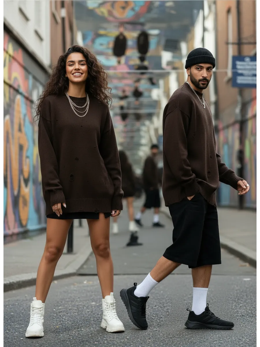 Свитер оверсайз рваный женский и мужской теплая унисекс