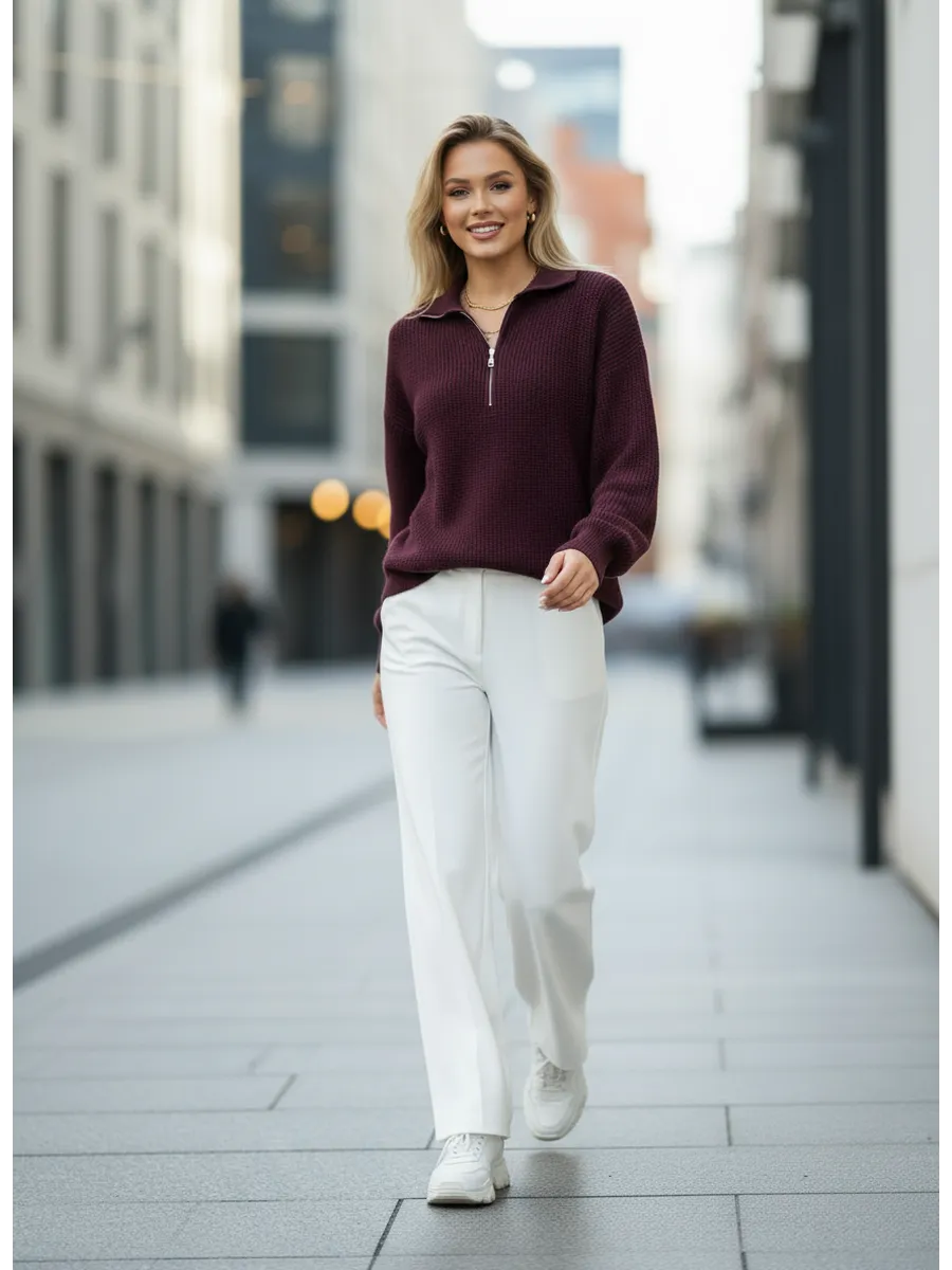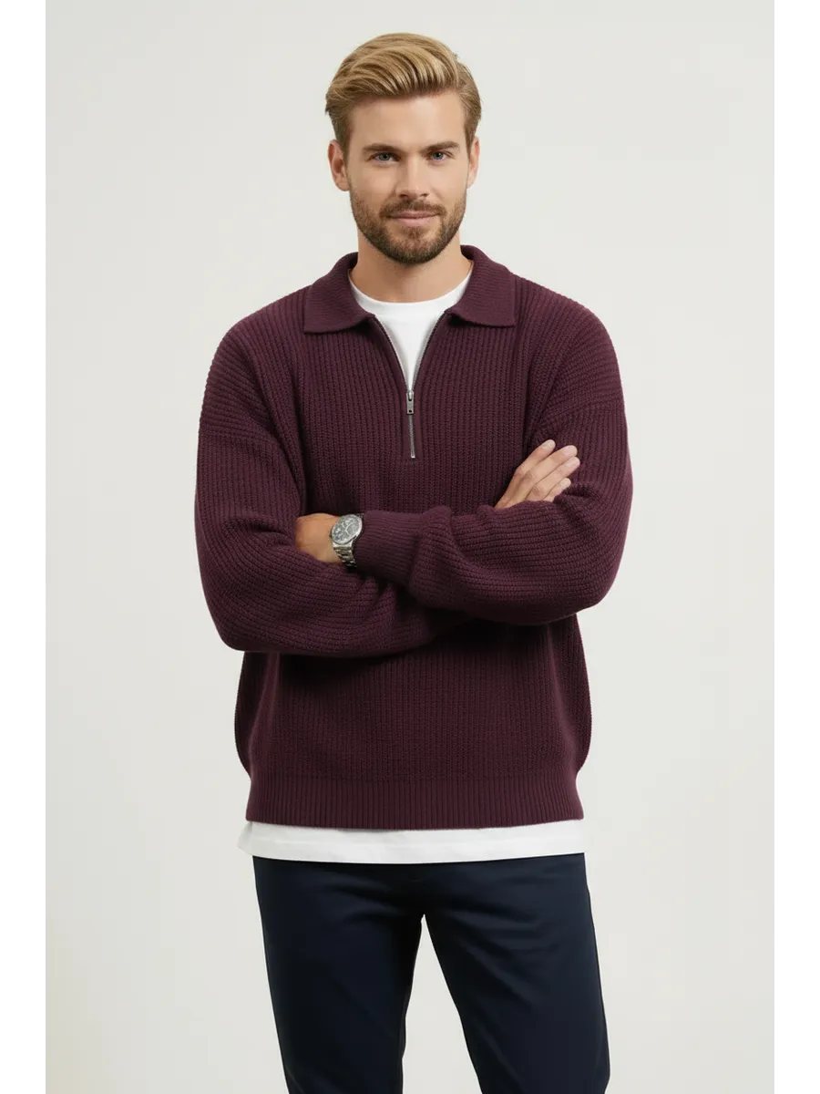 Свитер оверсайз теплый вязаный на молнии с воротником