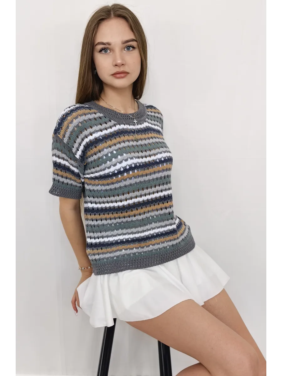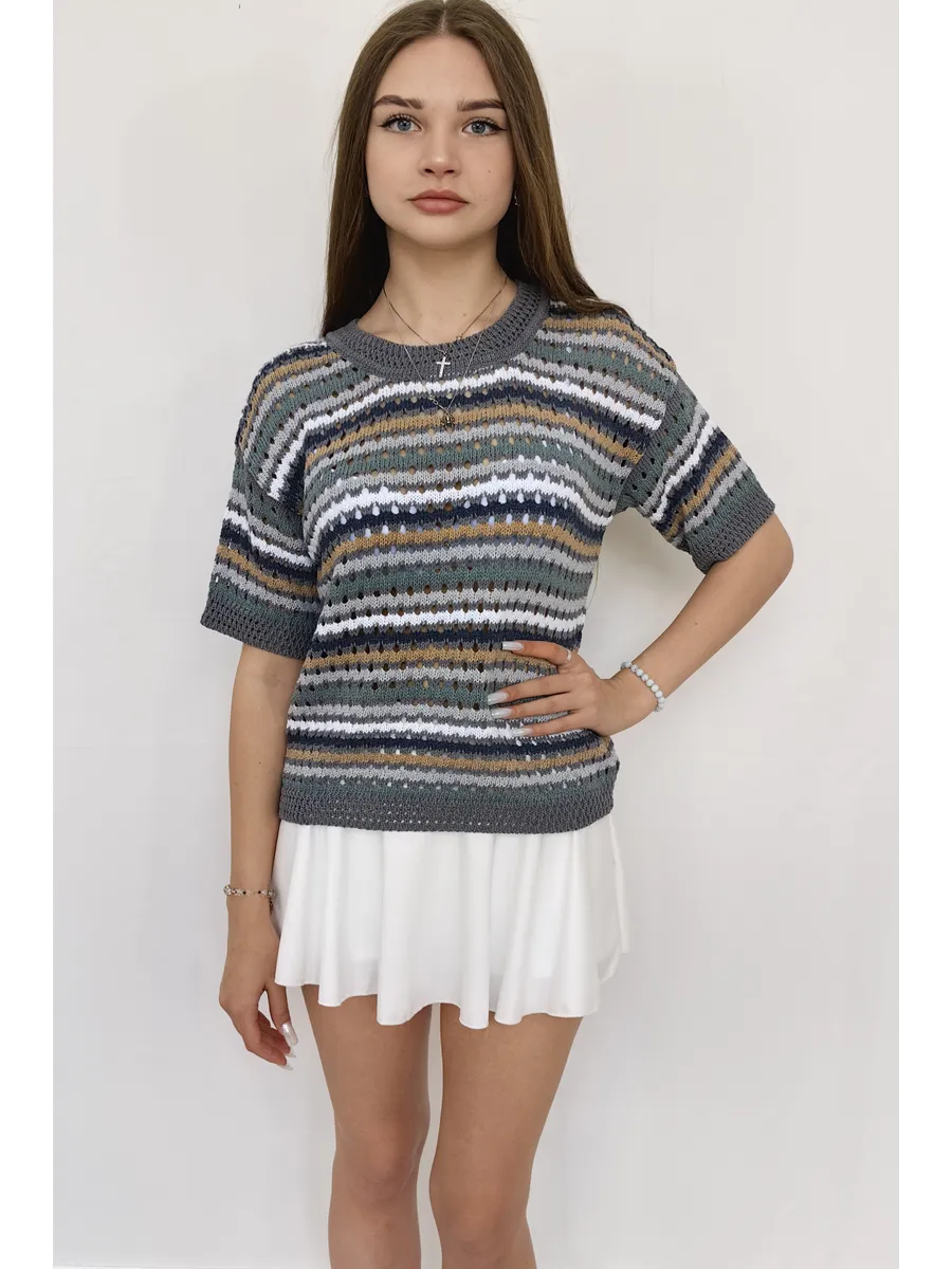 Наша вязаная модель отличается оригинальным принтом, который привлекает внимание. Ажурная текстура и детали в виде дырок создают игривый и современный образ. Свитер, выполненный в технике паутинка крупной вязки, отлично смотрится как в сочетании с юбкой, так и с джинсами. Полосатый узор добавляет изюминку, а оверсайз крой делает эту вещь подходящей для девушек-подростков, что делает её универсальной для любого стиля.