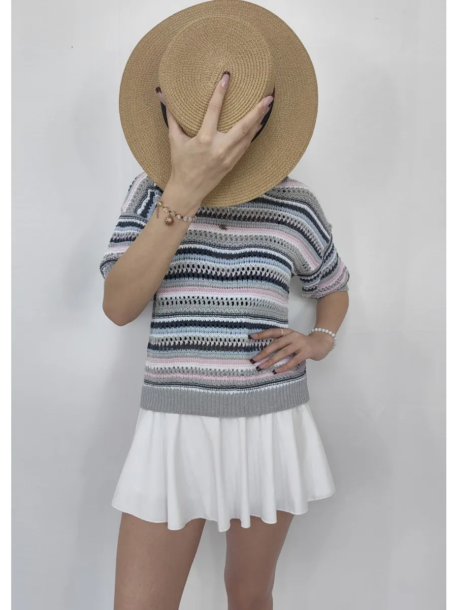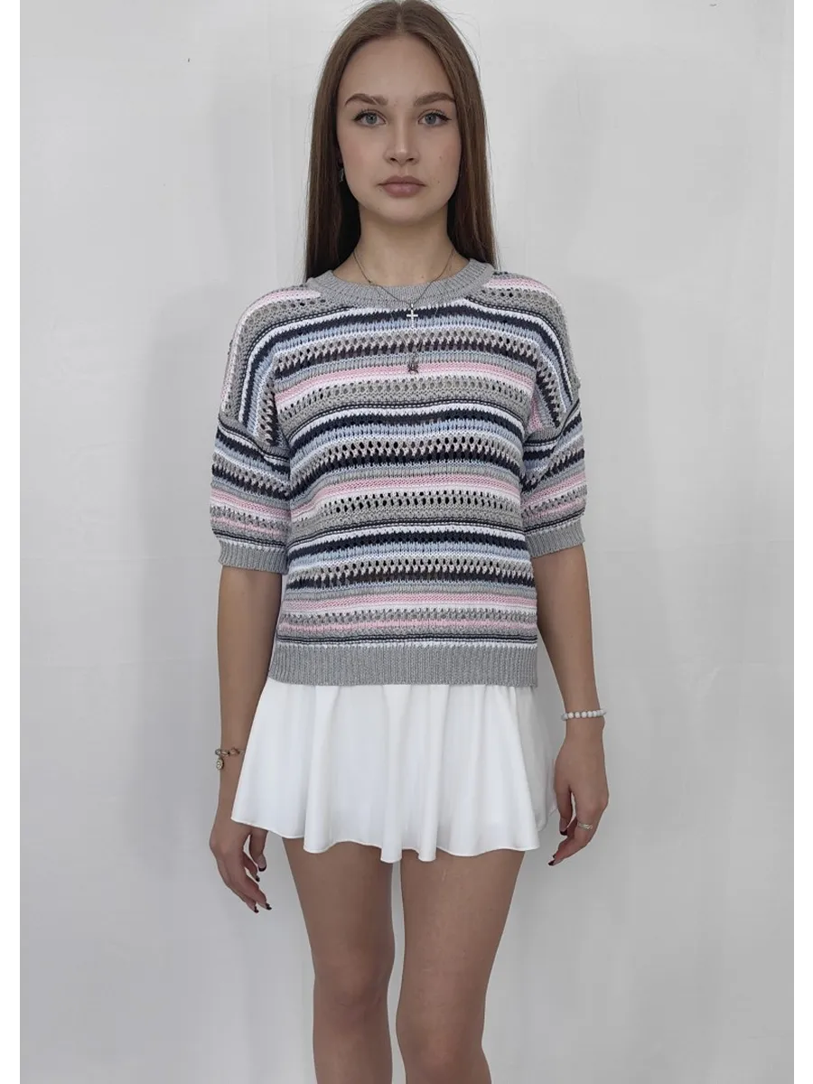 Наша вязаная модель отличается оригинальным принтом, который привлекает внимание. Ажурная текстура и детали в виде дырок создают игривый и современный образ. Свитер, выполненный в технике паутинка крупной вязки, отлично смотрится как в сочетании с юбкой, так и с джинсами. Полосатый узор добавляет изюминку, а оверсайз крой делает эту вещь подходящей для девушек-подростков, что делает её универсальной для любого стиля.