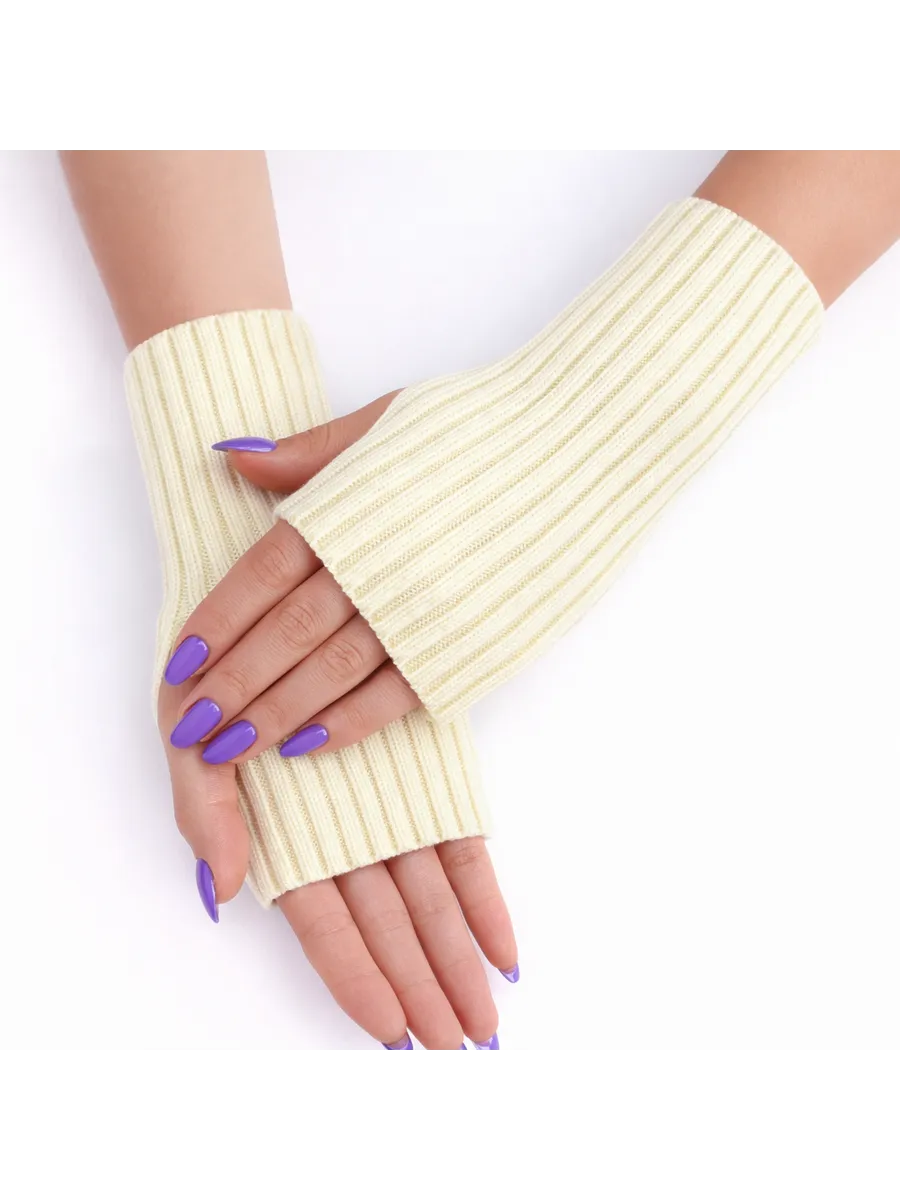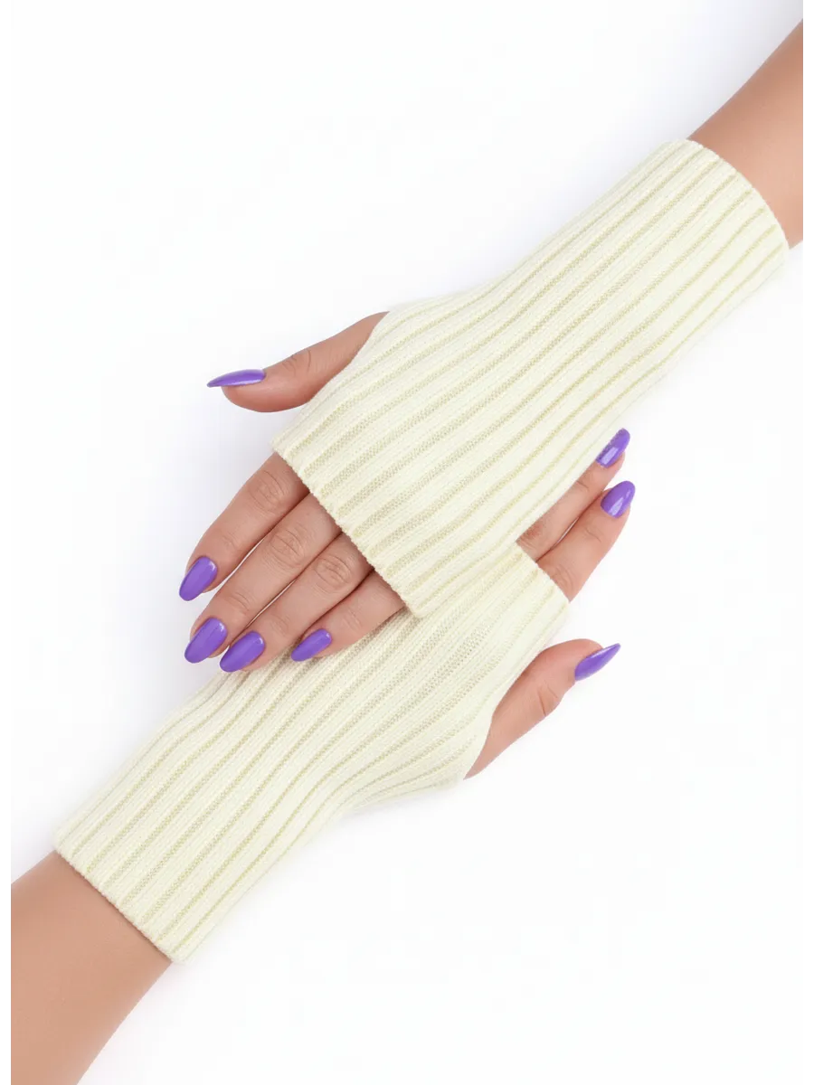 Митенки молочный теплые перчатки без пальцев y2k