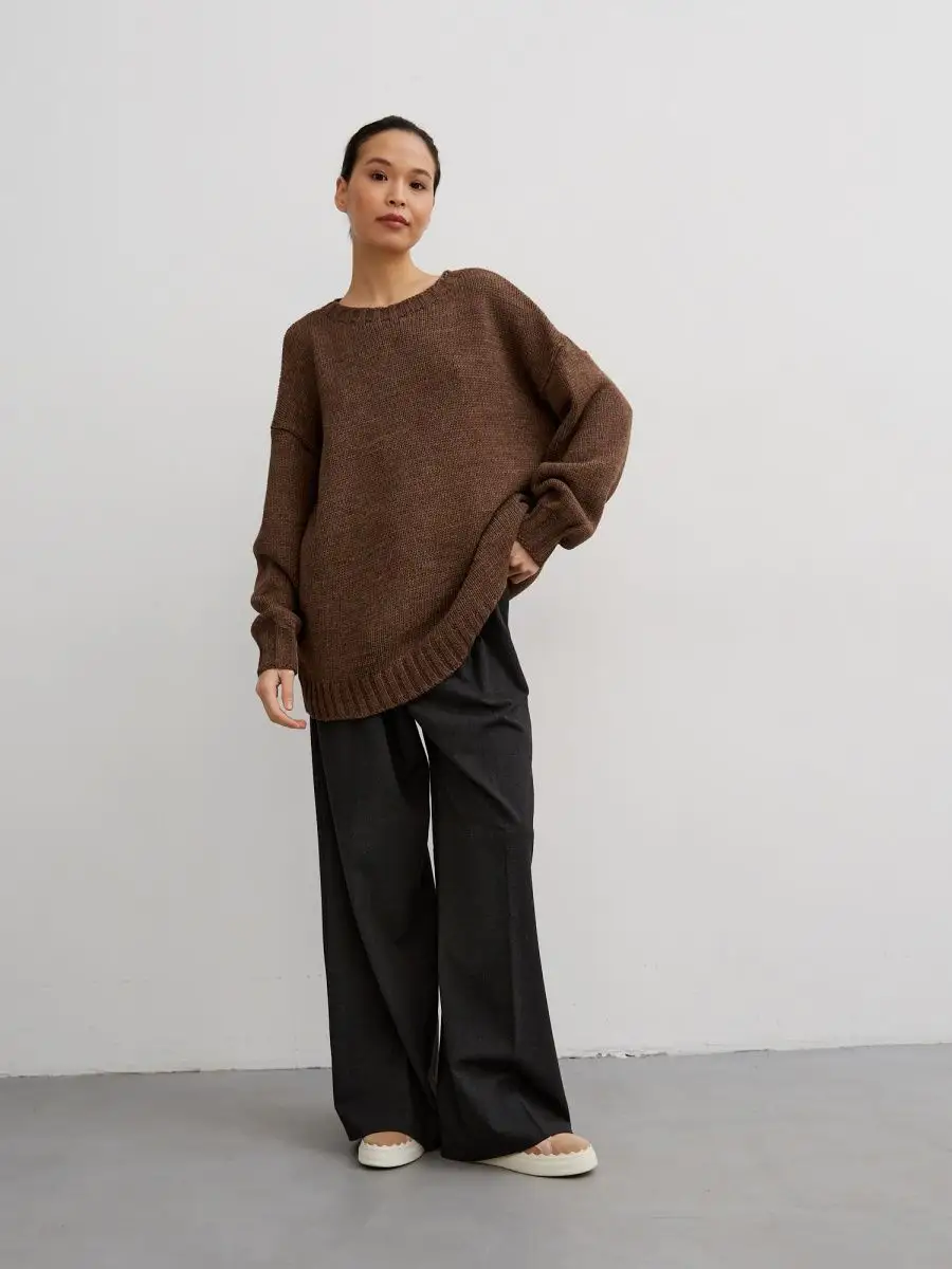 Удлиненный вязаный свитер крупной вязки с округлая горловина создан для зимних радужных вечеров с друзьями и долгих прогулок в осенний сезон. Объемный джемпер с горлом выглядит расслабленно, стильно, создавая комфорт и уют. Широкий крой, большой размер, свободный фасон оверсайз подходит для женщин любого возраста и комплекции, нравится подросткам и беременным. Женский шерстяной пуловер сохраняет мягкость. За счет акрила не мнется, сохраняет цвет и форму после многочисленных стирок. Длинный базовый свитшот украсит повседневный гардероб для женщин и девочек. Модный трикотажный джемпер заменит толстовку на молнии для спортивного образа с рваными джинсами и яркими леггинсами. Свободный оверсайз свитер больших размеров не сковывает, заменит худи подросткам. Уютный, теплый объемный джемпер с круглым горлом комфортный для повседневной носки даже летом, мягкий, при этом трикотажная кофта с длинным рукавом не мнется, держит форму, сохраняет цвет. Удлиненная модель смотрится как вязаное платье для невысоких и, как укороченный пуловер для высоких, подойдет беременным. Добавьте юбку в школьном стиле, платье с леопардовым принтом или короткие кожаные шорты. Заправьте в цветные брюки, накиньте пиджак на пуговицах и ловите восхищенные взгляды. Укутайтесь в мягкий свитер, как в любимый кардиган, или подарите в подарок сестре, маме, подруге. И пусть зима будет уютной и теплой. 1. модель рост 173см, 110-85-104, 2. модель рост - 166см, 89-61-92. На двух моделях одинаковый размер 42-46. Топик на модели Арт 431805597 шорты Арт 398920272