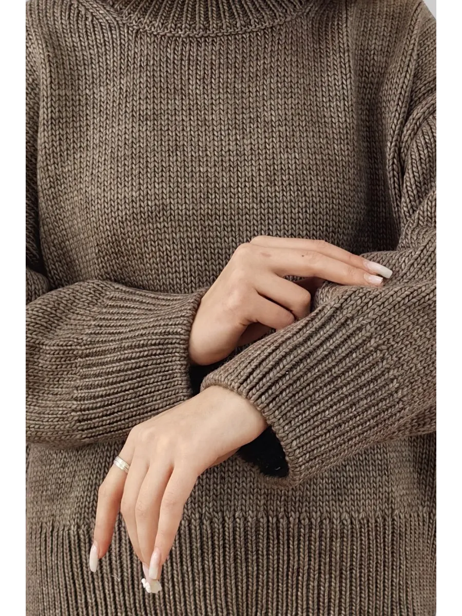 Удлиненный вязаный толстый свитер крупной вязки создан для зимних радужных вечеров с друзьями и долгих прогулок в осенний сезон. Объемный джемпер с горлом выглядит расслабленно, стильно, создавая комфорт и уют. Широкий крой, большой размер, свободный фасон оверсайз подходит для женщин любого возраста и комплекции, нравится подросткам и беременным. Женский шерстяной пуловер сохраняет мягкость. За счет акрила не мнется, сохраняет цвет и форму после многочисленных стирок. Длинный базовый свитшот украсит повседневный гардероб для женщин и девочек. Модный трикотажный джемпер заменит толстовку на молнии для спортивного образа с рваными джинсами и яркими леггинсами. Свободный оверсайз свитер больших размеров не сковывает, заменит худи подросткам. Уютный, теплый объемный джемпер с круглым горлом комфортный для повседневной носки, мягкий, и не колется, как шерстяной, при этом трикотажная кофта с длинным рукавом не мнется, держит форму, сохраняет цвет. Удлиненная модель смотрится как вязаное платье для невысоких и, как укороченный пуловер для высоких, подойдет беременным. Добавьте юбку в школьном стиле, платье с леопардовым принтом или короткие кожаные шорты. Заправьте в цветные брюки, накиньте пиджак на пуговицах и ловите восхищенные взгляды. Укутайтесь в мягкий свитер, как в любимый кардиган, или подарите в подарок сестре, маме, подруге. И пусть зима будет уютной и теплой. Топик на модели Арт 431805597 шорты Арт 398920272 .