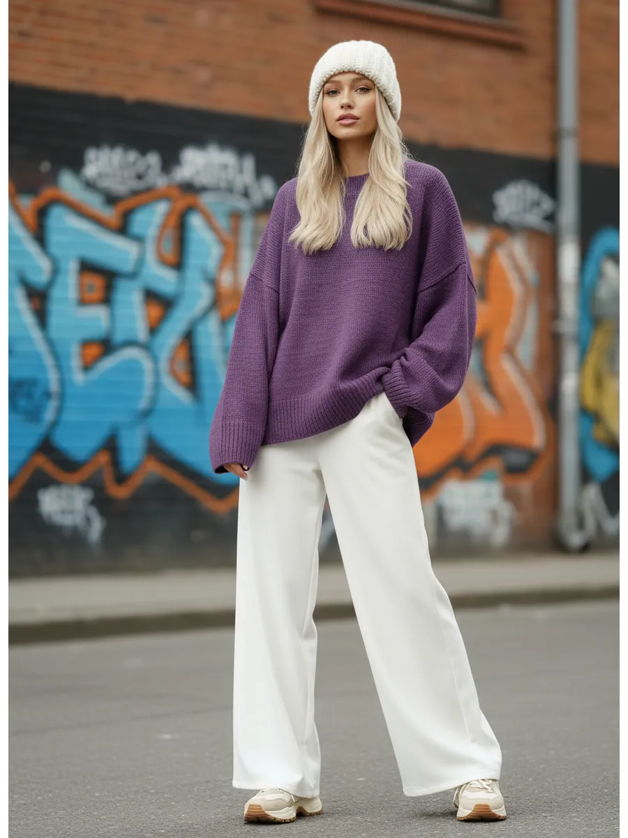 Удлиненный вязаный толстый свитер крупной вязки создан для зимних радужных вечеров с друзьями и долгих прогулок в осенний сезон. Объемный джемпер с горлом выглядит расслабленно, стильно, создавая комфорт и уют. Широкий крой, большой размер, свободный фасон оверсайз подходит для женщин любого возраста и комплекции, нравится подросткам и беременным. Женский шерстяной пуловер сохраняет мягкость. За счет акрила не мнется, сохраняет цвет и форму после многочисленных стирок. Длинный базовый свитшот украсит повседневный гардероб для женщин и девочек. Модный трикотажный джемпер заменит толстовку на молнии для спортивного образа с рваными джинсами и яркими леггинсами. Свободный оверсайз свитер больших размеров не сковывает, заменит худи подросткам. Уютный, теплый объемный джемпер с круглым горлом комфортный для повседневной носки, мягкий, и не колется, как шерстяной, при этом трикотажная кофта с длинным рукавом не мнется, держит форму, сохраняет цвет. Удлиненная модель смотрится как вязаное платье для невысоких и, как укороченный пуловер для высоких, подойдет беременным. Добавьте юбку в школьном стиле, платье с леопардовым принтом или короткие кожаные шорты. Заправьте в цветные брюки, накиньте пиджак на пуговицах и ловите восхищенные взгляды. Укутайтесь в мягкий свитер, как в любимый кардиган, или подарите в подарок сестре, маме, подруге. И пусть зима будет уютной и теплой. Топик на модели Арт 431805597 шорты Арт 398920272 .