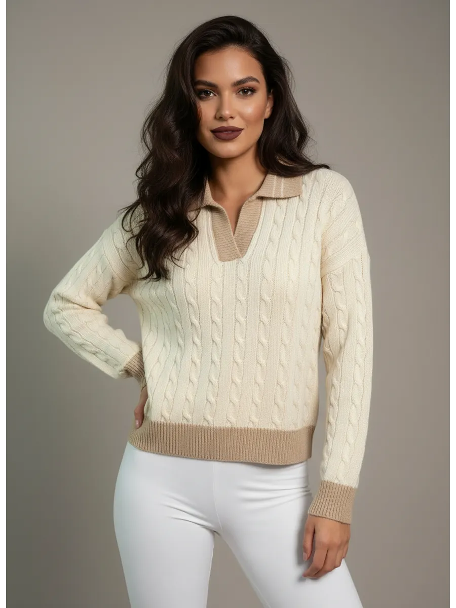 Женский вязаный свитер с отложным воротником поло – идеальный выбор для стильных и практичных девушек, которые ценят комфорт и современные тренды. Укороченный джемпер выполнен из мягкой и теплой Турецкой пряжи. Благодаря чему отлично сохраняет тепло в холодное время года, что особенно актуально для осеннего и зимнего сезона. Свободный крой и резинка по низу изделия, придают универсальность и свободу движений, позволяя чувствовать себя уверенно и уютно в любой ситуации. Украшен оригинальным узором с косами и подобран сочетанием цветов, что делает его особенно привлекательным и модным элементом гардероба. Прекрасно подойдет как для повседневной носки, так и для создания стильных образов на учебу, прогулку или встречи с друзьями и деловому офисному стилю. Свитер с отложным воротником поло легко сочетать с различными предметами одежды, благодаря чему он становится базовой вещью для гардероба каждой модницы. Для девочки подростка эта вязаная кофта – отличное решение, ведь он не только подчеркивает индивидуальность, но и обеспечивает необходимый комфорт и тепло в прохладную погоду. Теплый укороченный джемпер с длинным рукавом защитит от ветра и холода, а дизайн с косами добавит яркости даже самым простым лукам. Он идеально подходит для создания многослойных осенних и зимних образов, позволяя экспериментировать со стилем и всегда выглядеть модно. Прекрасный выбор для девушки, которая хочет выглядеть стильно, чувствовать себя уютно и уверенно в любой ситуации. Станет любимой вещью в гардеробе, ведь он подчеркивает женственность, защищает от холода и легко комбинируется с другой одеждой, создавая новые образы.