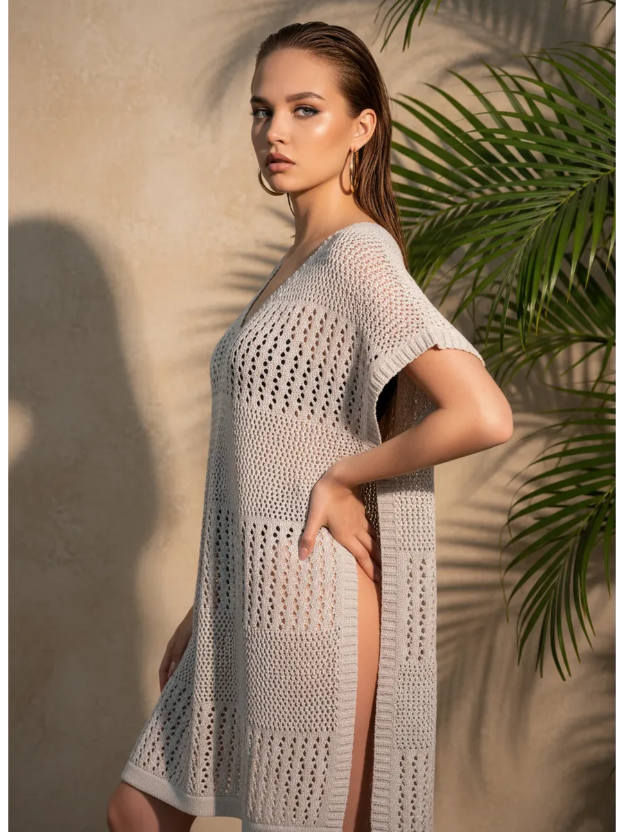 Пляжная туника накидка на купальник вязаная
