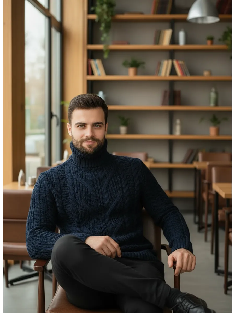Свитер мужской с горлом теплый шерстяной