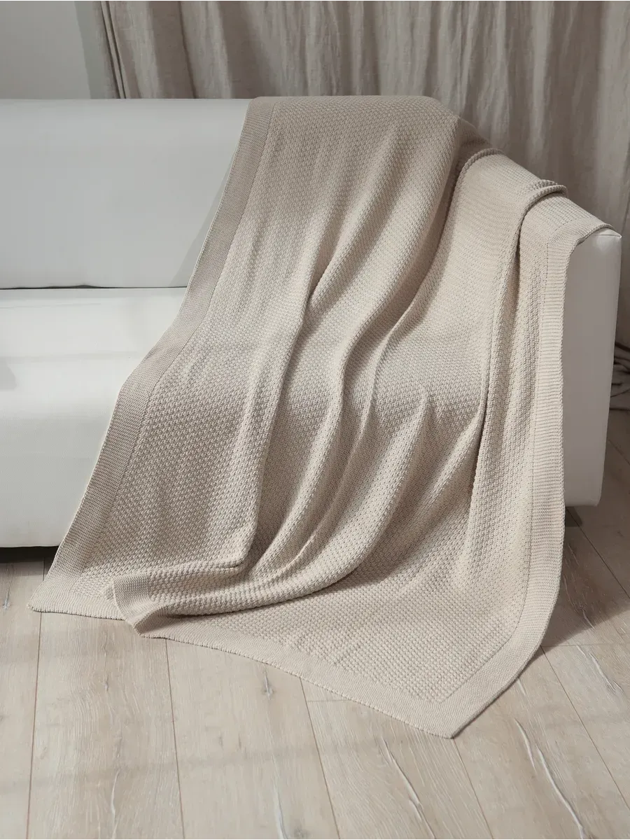 Плед 160х220 на кровать диван покрывало вязаный Хлопок 100 %