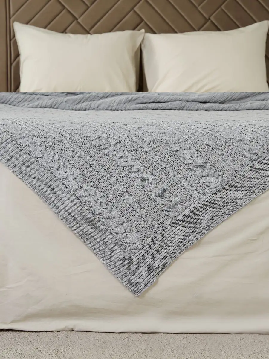 Плед 180х220 на кровать диван покрывало вязаный Хлопок 100 %