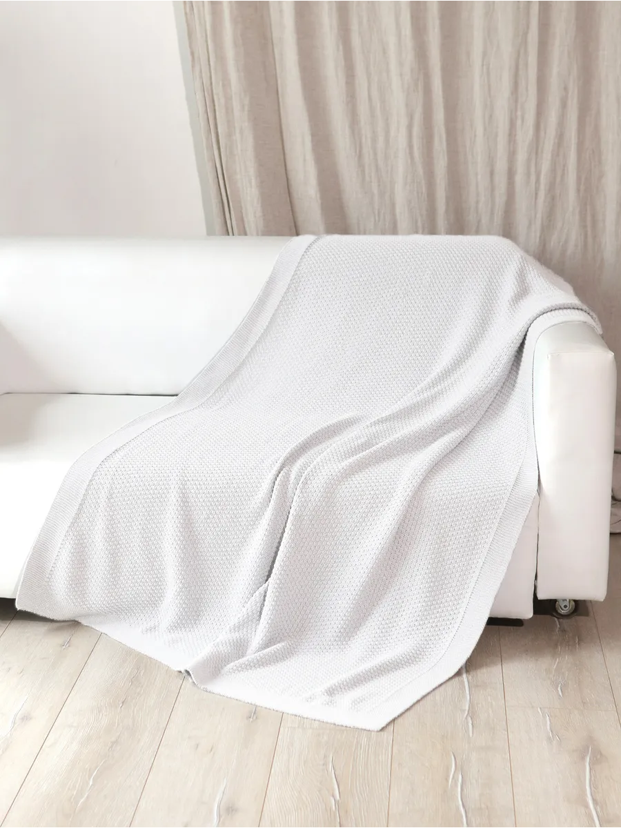 Плед 180х220 на кровать диван покрывало вязаный Хлопок 100 %
