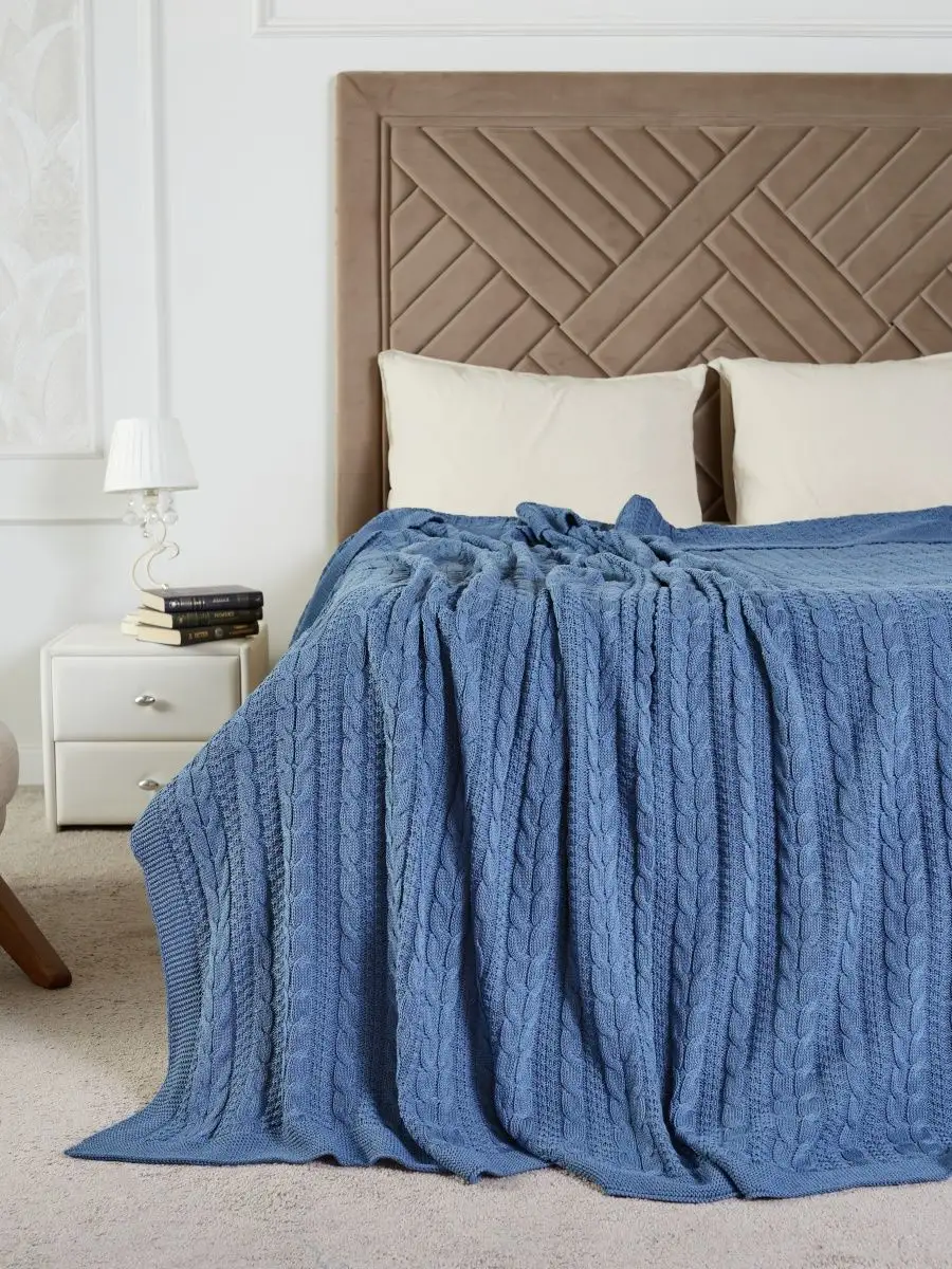 Вязаный плед 180х220 см от Российского бренда PULLTON изготовлен из 100% хлопка, что обеспечивает мягкость и комфорт при использовании. Однотонный дизайн и отсутствие рисунка позволяют пледу легко сочетаться с любым интерьером. Плед размером 180 на 220 см отлично подходит как покрывало для двуспальной кровати, дивана или кресла, как одеяло или как элемент декора. Он достаточно большой, чтобы обеспечить комфортное покрытие, и достаточно тонкий, чтобы не создавать лишнего объема. Хлопковый плед обладает рядом преимуществ, таких как теплоизоляция, воздухопроницаемость, гигроскопичность и экологичность. Он также прост в уходе и долговечен. Плед является универсальным аксессуаром, который можно использовать в различных помещениях и ситуациях. В спальне: как покрывало на кровати или как одеяло для сна. В гостиной: как накидка на диван или кресло, как дополнительный элемент декора или как плед для отдыха на полу. В детской комнате: как одеяло или покрывало на детскую кроватку, как игровой коврик для ребенка. На даче: как покрывало или как одеяло на террасе или в беседке. На пикнике: как одеяло, на котором можно сидеть или лежать, как защита от солнца или от прохлады. Хлопковый плед может стать прекрасным подарком на любой праздник, например, на день рождения, Новый год, Рождество, 8 марта, 23 февраля или просто как знак внимания. Он станет прекрасным выбором для создания уютной новогодней атмосферы в доме! Данная модель пледа доступна в различных размерах, включая 120x220 см, 150X200 см, 160x220 см, 200X220 см и 220X240 см. Вы можете выбрать наиболее подходящий размер в зависимости от ваших предпочтений и целей использования пледа. Обращаем ваше внимание, плед достаточно тяжелый, т.к. выполнен из 100% хлопка и это является преимуществом нашего изделия. Изделие из натурального хлопка не будет таким легким, как синтетические пледы: пушистый, плюшевый, флисовый и другие. \n!!ВНИМАНИЕ!! Оттенки пледа могут незначительно отличаться от изображений на сайте. Это связано с особенностями поставок пряжи — возможны небольшие вариации цвета в полутонах.
