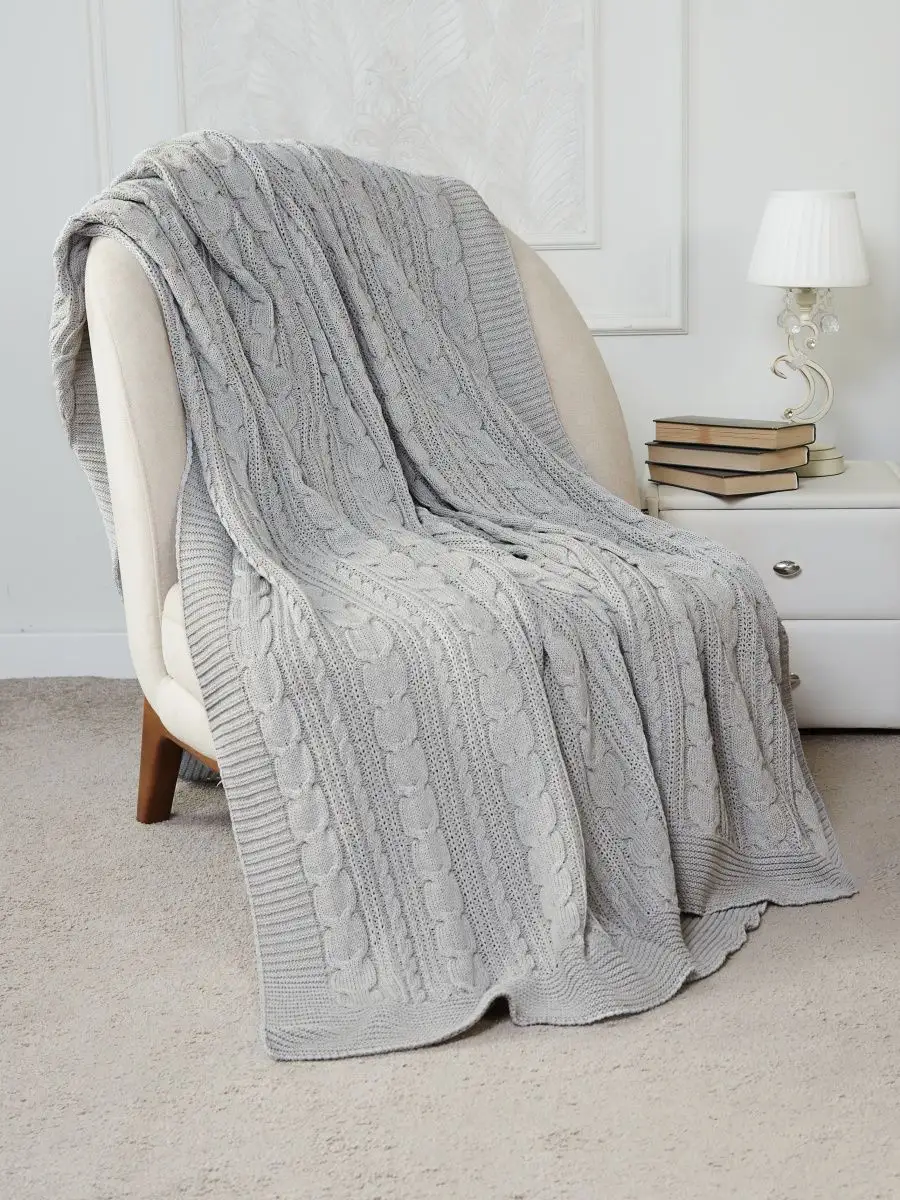 Плед 220х240 на кровать диван покрывало вязаный Хлопок 100 %