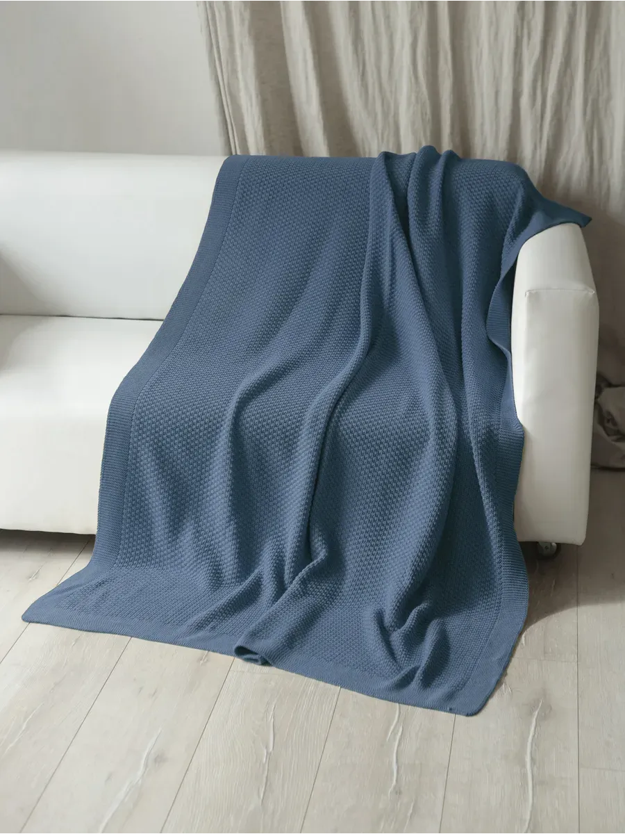 Вязаный плед из хлопка / Одеяло детское / Плед на кровать / детский вязаный плед из хлопка / одеяло летнее