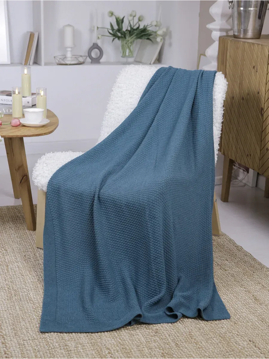 Плед 220х240 на кровать диван покрывало вязаный Хлопок 100 %