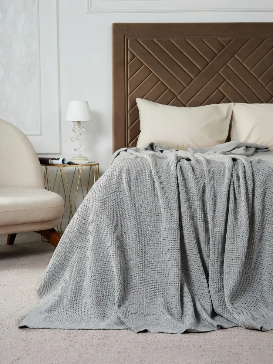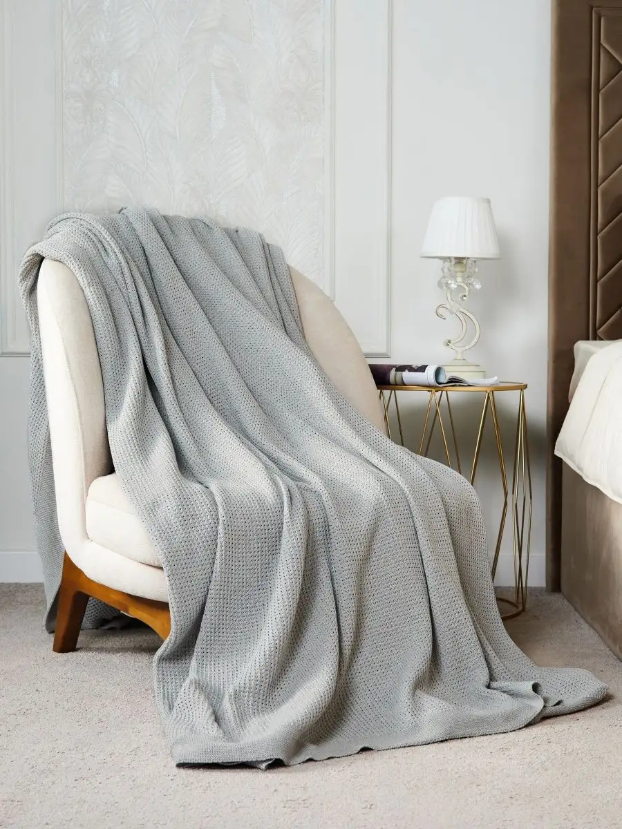 Вязаный плед 240х260 см от Российского бренда HEDRICY изготовлен из 100% хлопка, что обеспечивает мягкость и комфорт при использовании. Однотонный дизайн и отсутствие рисунка позволяют пледу легко сочетаться с любым интерьером. Плед размером 240 на 260 см отлично подходит как покрывало для двуспальной кровати, дивана или кресла, как одеяло или как элемент декора. Он достаточно большой, чтобы обеспечить комфортное покрытие, и достаточно тонкий, чтобы не создавать лишнего объема. Хлопковый плед обладает рядом преимуществ, таких как теплоизоляция, воздухопроницаемость, гигроскопичность и экологичность. Он также прост в уходе и долговечен. Плед является универсальным аксессуаром, который можно использовать в различных помещениях и ситуациях. В спальне: как покрывало на кровати или как одеяло для сна. В гостиной: как накидка на диван или кресло, как дополнительный элемент декора или как плед для отдыха на полу. В детской комнате: как одеяло или покрывало на детскую кроватку, как игровой коврик для ребенка. На даче: как покрывало или как одеяло на террасе или в беседке. На пикнике: как одеяло, на котором можно сидеть или лежать, как защита от солнца или от прохлады. Хлопковый плед может стать прекрасным подарком на любой праздник, например, на день рождения, Новый год, Рождество, 8 марта, 23 февраля или просто как знак внимания. Он станет прекрасным выбором для создания уютной новогодней атмосферы в доме! Данная модель пледа доступна в различных размерах, включая 120x220 см, 150X200 см, 160x220 см, 180X220 см, 200X220 см и 220X240 см. Вы можете выбрать наиболее подходящий размер в зависимости от ваших предпочтений и целей использования пледа. Обращаем ваше внимание, плед достаточно тяжелый, т.к. выполнен из 100% хлопка и это является преимуществом нашего изделия. Изделие из натурального хлопка не будет таким легким, как синтетические пледы: пушистый, плюшевый, флисовый и другие.