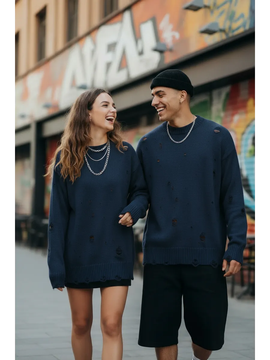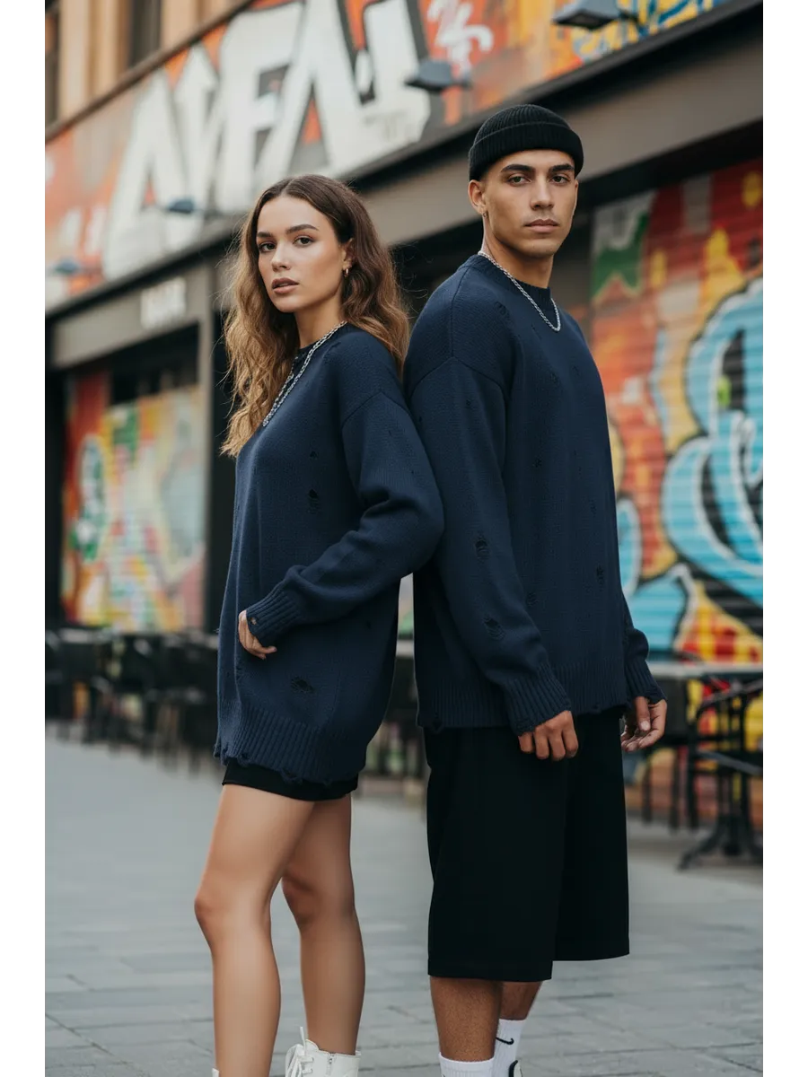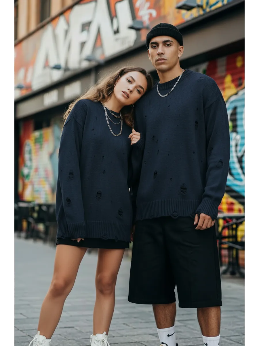 Свитер оверсайз рваный женский и мужской теплая унисекс