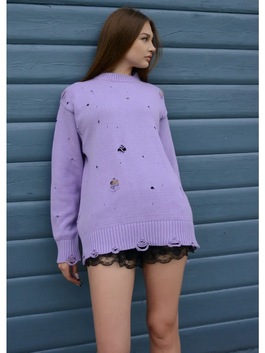Оверсайз свитер выполнени из 100% хлопка. Это универсальный вязаный свитер, который подойдет как мужчине, так и женщине. Объёмный и теплый вязаный джемпер с дырками будет отличной альтернативой худи или балахону. Свободный oversize свитер больших размеров не сковывает. Уютный, теплый объемный джемпер с круглой горловиной, спущенной линией плеча и свободными рукавами. Комфортный, подходит для повседневной носки даже летом, мягкий и не колется, при этом трикотажная кофта с длинным рукавом не мнется, держит форму, сохраняет цвет после стирки. Свитер женский оверсайз офис или на учебу, дома или на прогулке, вам всегда будет тепло и комфортно в нашем теплом рваном оверсайз свитере. Свитшот подойдет как домашняя одежда для женщин. Свитер с дырками неприхотлив в уходе, не деформируется при стирке, не требует глажки. Эти теплые вязаные кофты с длинным рукавом являются прекрасным подарком на день рождения, день святого валентина 14 февраля, день защитника отечества 23 февраля, 8 марта. Согреют вас в прохладный летний вечер и составят необычный family look для фотосессии. Интересный дизайн и простота ухода сделают джемпер незаменимым элементом вашего гардероба.