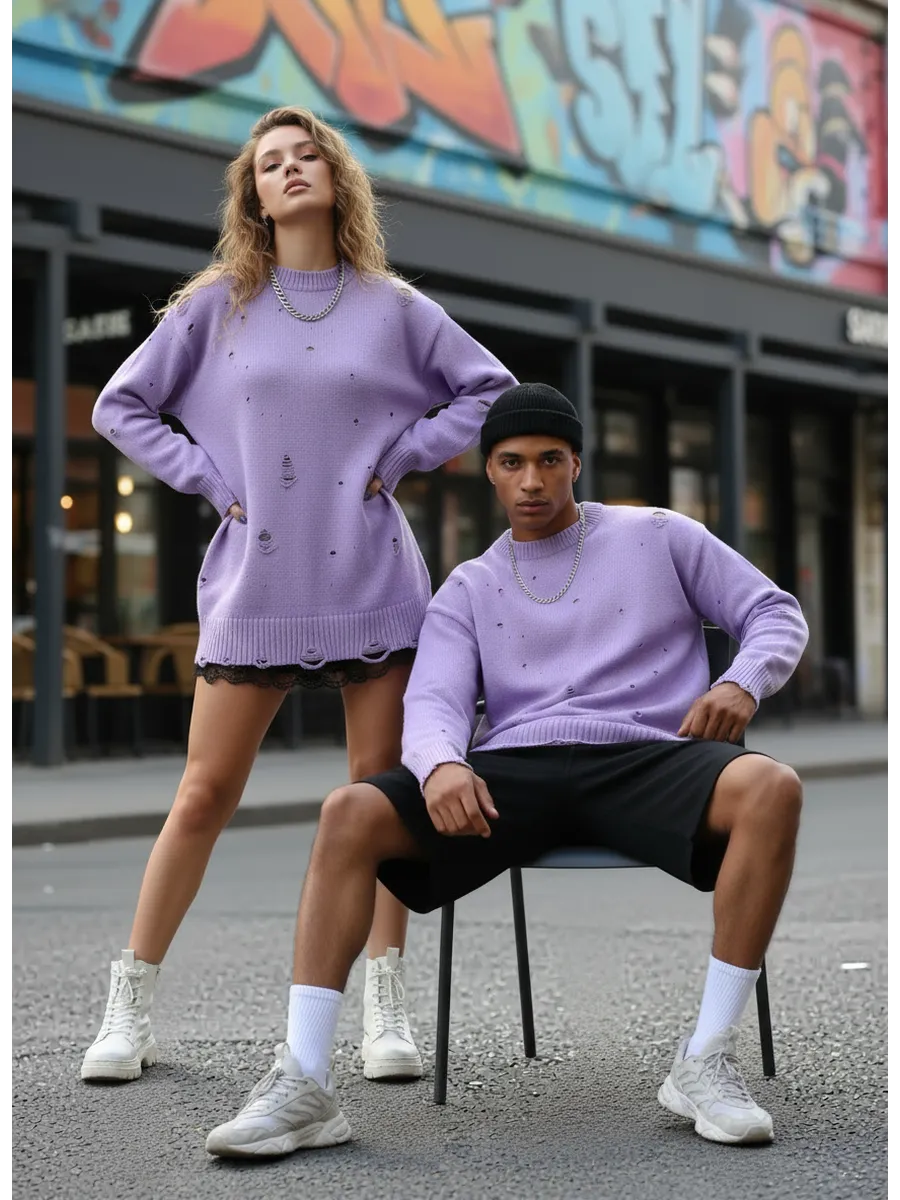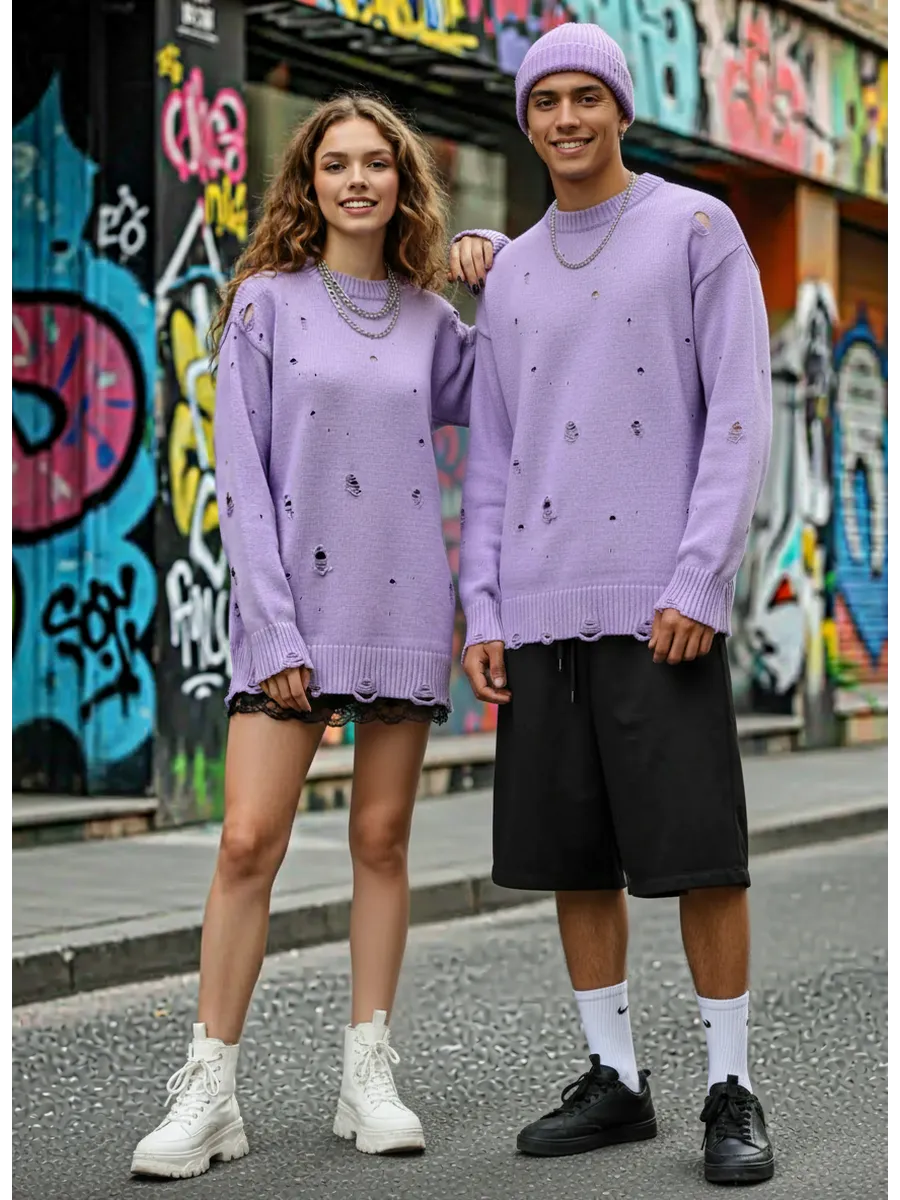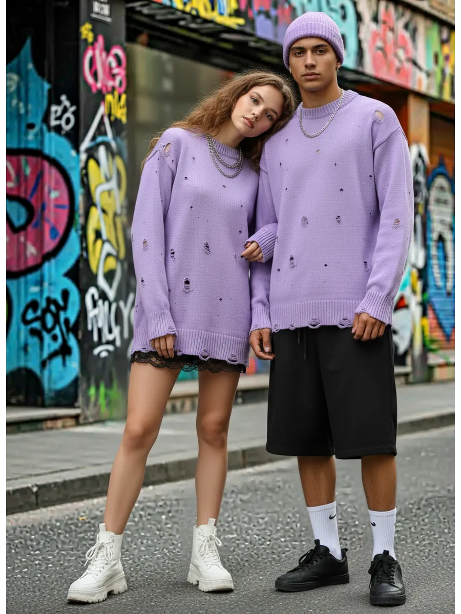 Свитер оверсайз рваный женский и мужской теплая унисекс