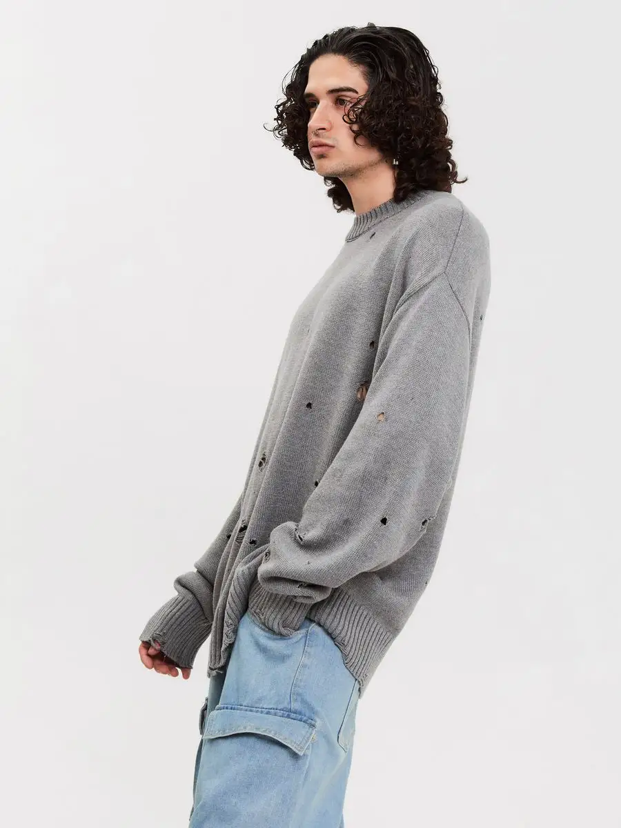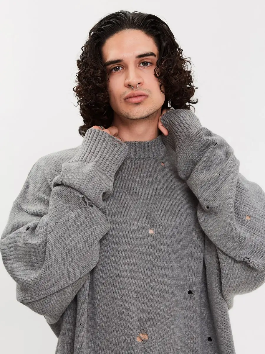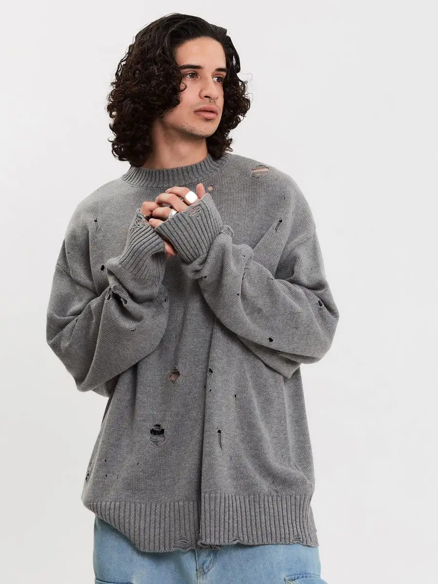 Свитер оверсайз рваный женский и мужской теплая унисекс