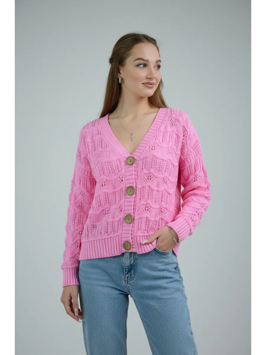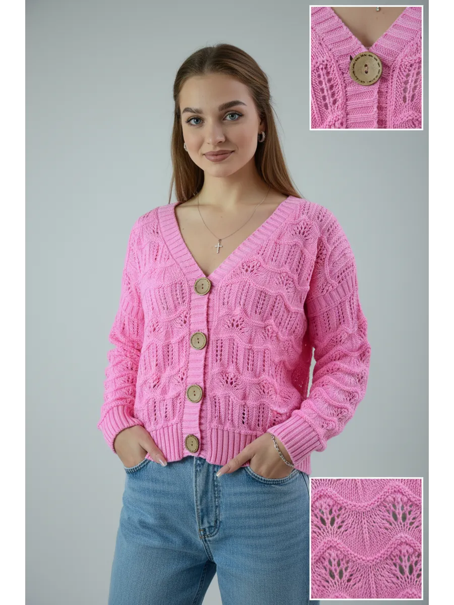 Кардиган женский кроше укороченный оверсайз