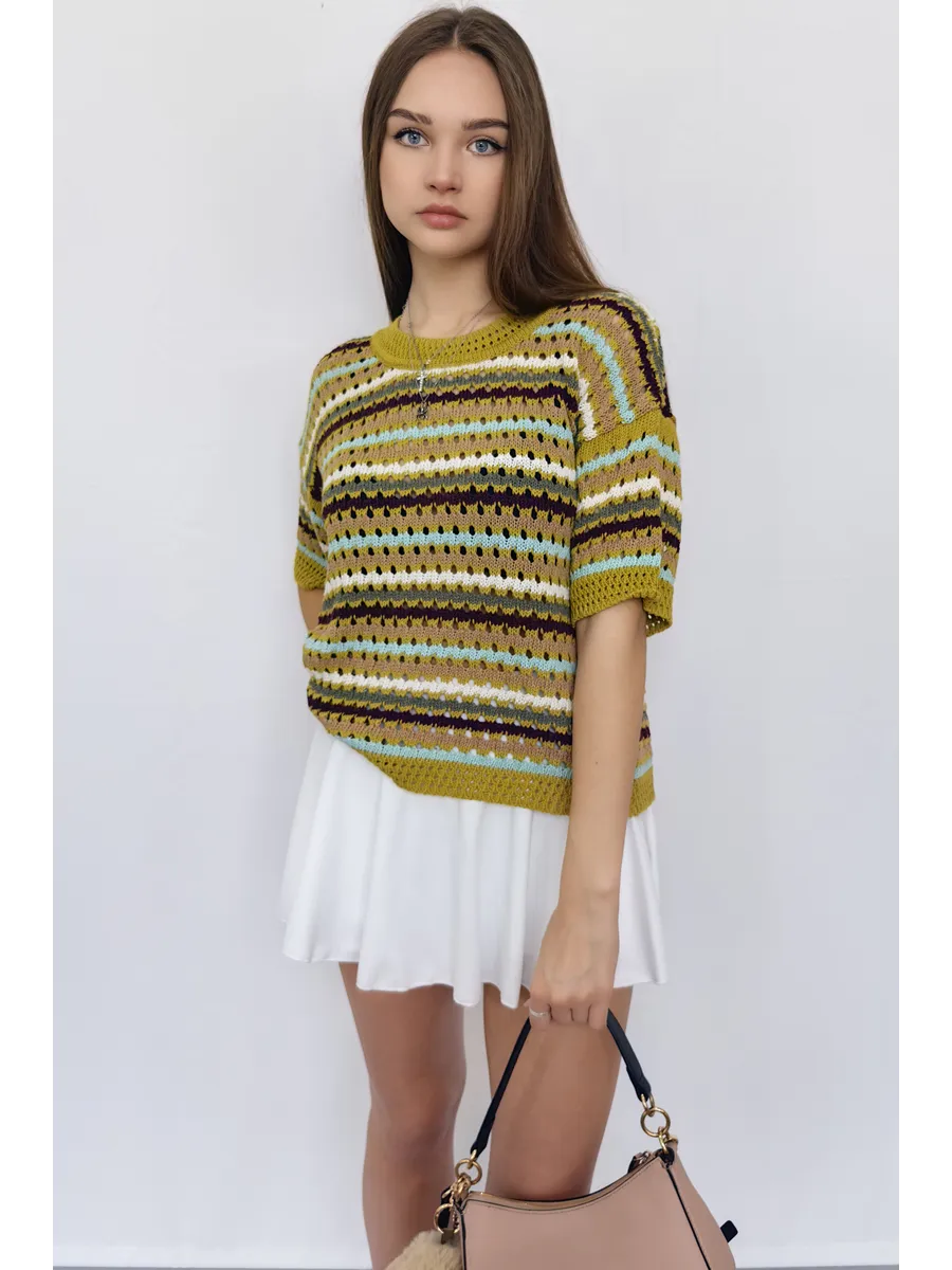 Наша вязаная модель отличается оригинальным принтом, который привлекает внимание. Ажурная текстура и детали в виде дырок создают игривый и современный образ. Свитер, выполненный в технике паутинка крупной вязки, отлично смотрится как в сочетании с юбкой, так и с джинсами. Полосатый узор добавляет изюминку, а оверсайз крой делает эту вещь подходящей для девушек-подростков, что делает её универсальной для любого стиля.