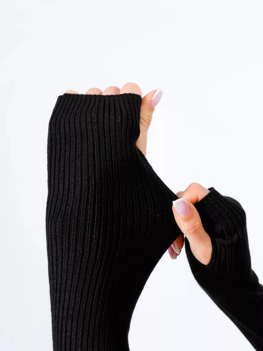 Митенки длинные темно-серый перчатки без пальцев гетры