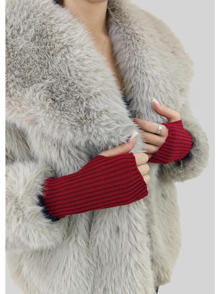 Митенки бордовые теплые перчатки без пальцев y2k