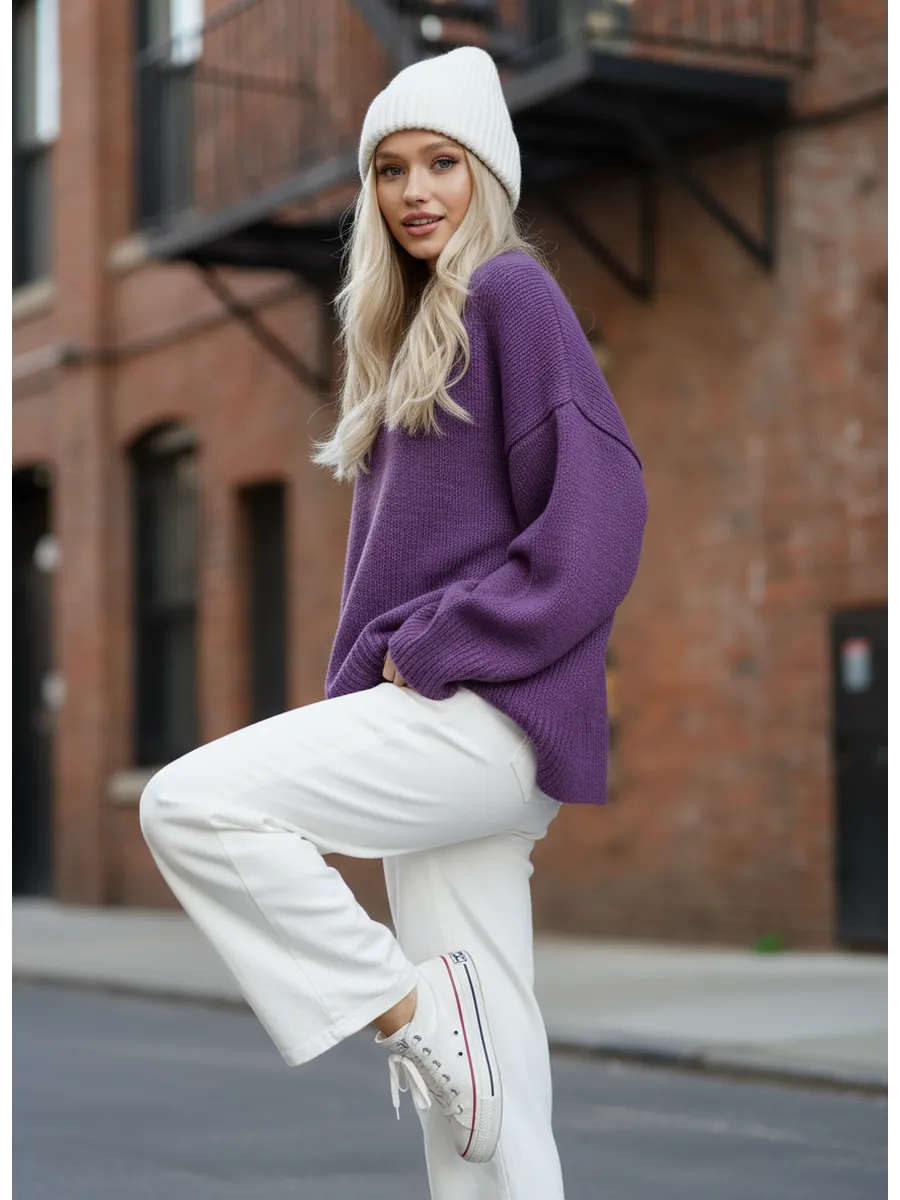 Удлиненный вязаный толстый свитер крупной вязки создан для зимних радужных вечеров с друзьями и долгих прогулок в осенний сезон. Объемный джемпер с горлом выглядит расслабленно, стильно, создавая комфорт и уют. Широкий крой, большой размер, свободный фасон оверсайз подходит для женщин любого возраста и комплекции, нравится подросткам и беременным. Женский шерстяной пуловер сохраняет мягкость. За счет акрила не мнется, сохраняет цвет и форму после многочисленных стирок. Длинный базовый свитшот украсит повседневный гардероб для женщин и девочек. Модный трикотажный джемпер заменит толстовку на молнии для спортивного образа с рваными джинсами и яркими леггинсами. Свободный оверсайз свитер больших размеров не сковывает, заменит худи подросткам. Уютный, теплый объемный джемпер с круглым горлом комфортный для повседневной носки, мягкий, и не колется, как шерстяной, при этом трикотажная кофта с длинным рукавом не мнется, держит форму, сохраняет цвет. Удлиненная модель смотрится как вязаное платье для невысоких и, как укороченный пуловер для высоких, подойдет беременным. Добавьте юбку в школьном стиле, платье с леопардовым принтом или короткие кожаные шорты. Заправьте в цветные брюки, накиньте пиджак на пуговицах и ловите восхищенные взгляды. Укутайтесь в мягкий свитер, как в любимый кардиган, или подарите в подарок сестре, маме, подруге. И пусть зима будет уютной и теплой. Топик на модели Арт 431805597 шорты Арт 398920272 .