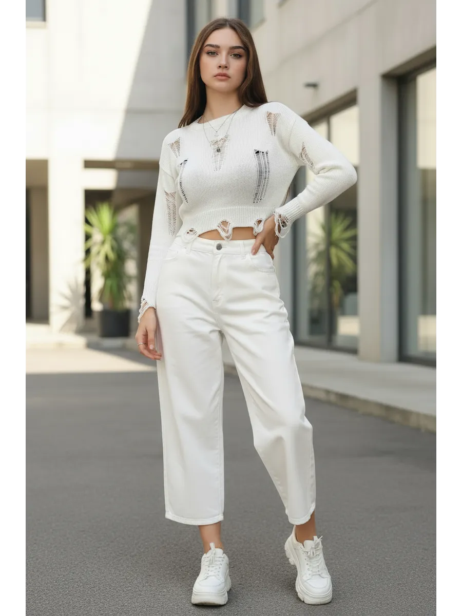 Свитер укороченный c рваным эффектом оверсайз кофта