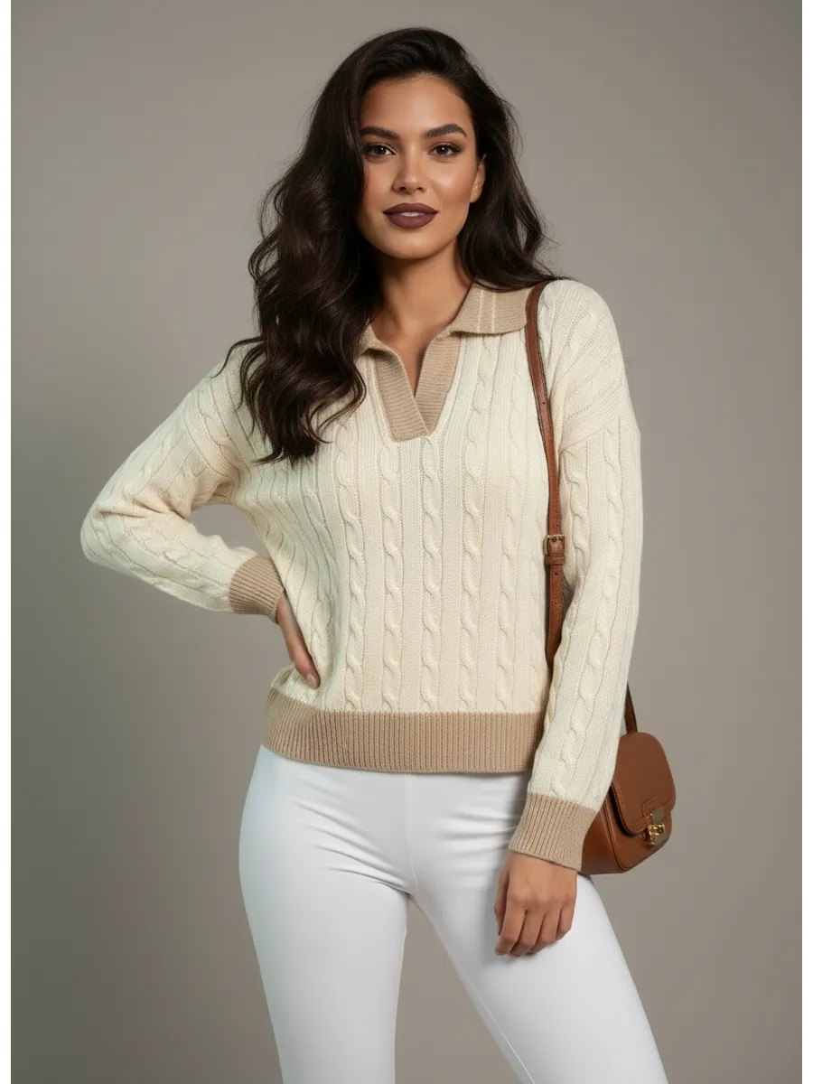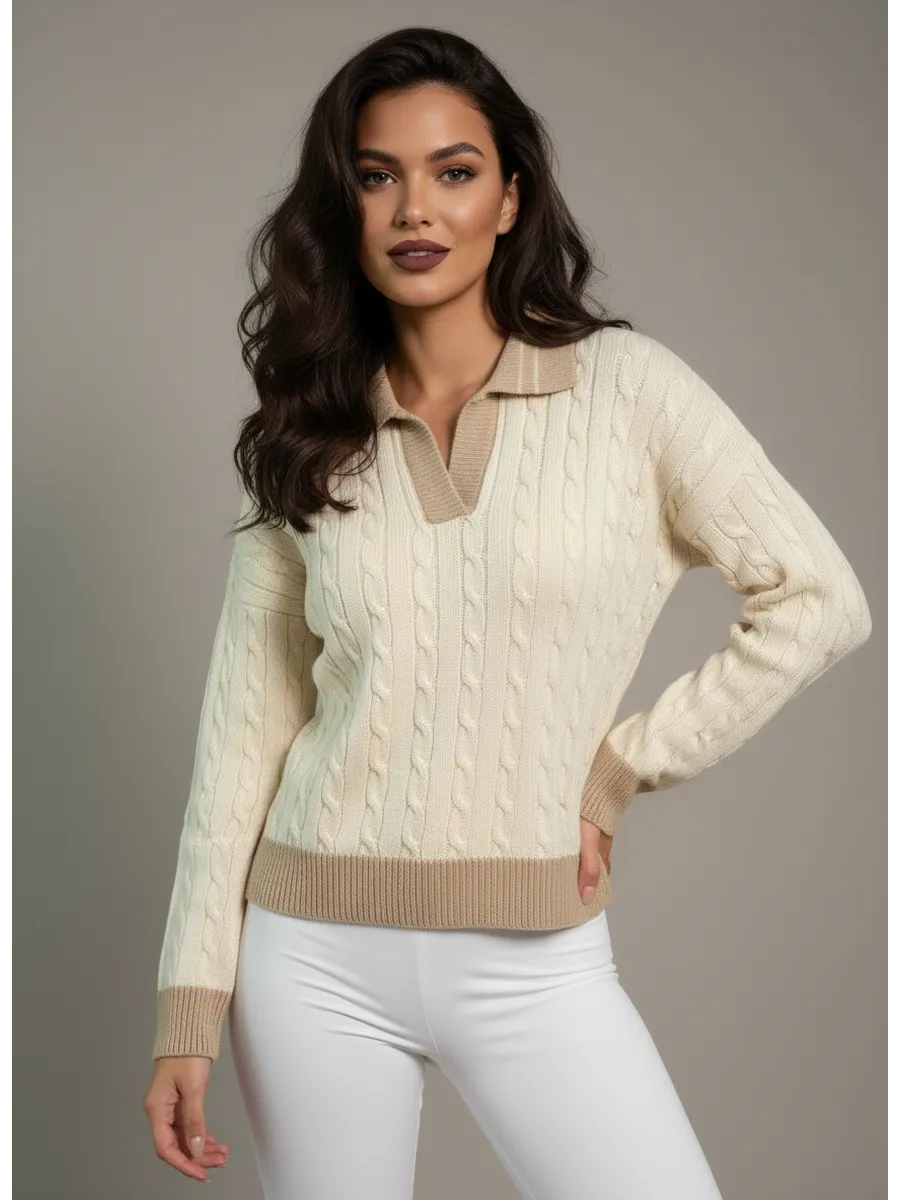 Женский вязаный свитер с отложным воротником поло – идеальный выбор для стильных и практичных девушек, которые ценят комфорт и современные тренды. Укороченный джемпер выполнен из мягкой и теплой Турецкой пряжи. Благодаря чему отлично сохраняет тепло в холодное время года, что особенно актуально для осеннего и зимнего сезона. Свободный крой и резинка по низу изделия, придают универсальность и свободу движений, позволяя чувствовать себя уверенно и уютно в любой ситуации. Украшен оригинальным узором с косами и подобран сочетанием цветов, что делает его особенно привлекательным и модным элементом гардероба. Прекрасно подойдет как для повседневной носки, так и для создания стильных образов на учебу, прогулку или встречи с друзьями и деловому офисному стилю. Свитер с отложным воротником поло легко сочетать с различными предметами одежды, благодаря чему он становится базовой вещью для гардероба каждой модницы. Для девочки подростка эта вязаная кофта – отличное решение, ведь он не только подчеркивает индивидуальность, но и обеспечивает необходимый комфорт и тепло в прохладную погоду. Теплый укороченный джемпер с длинным рукавом защитит от ветра и холода, а дизайн с косами добавит яркости даже самым простым лукам. Он идеально подходит для создания многослойных осенних и зимних образов, позволяя экспериментировать со стилем и всегда выглядеть модно. Прекрасный выбор для девушки, которая хочет выглядеть стильно, чувствовать себя уютно и уверенно в любой ситуации. Станет любимой вещью в гардеробе, ведь он подчеркивает женственность, защищает от холода и легко комбинируется с другой одеждой, создавая новые образы.