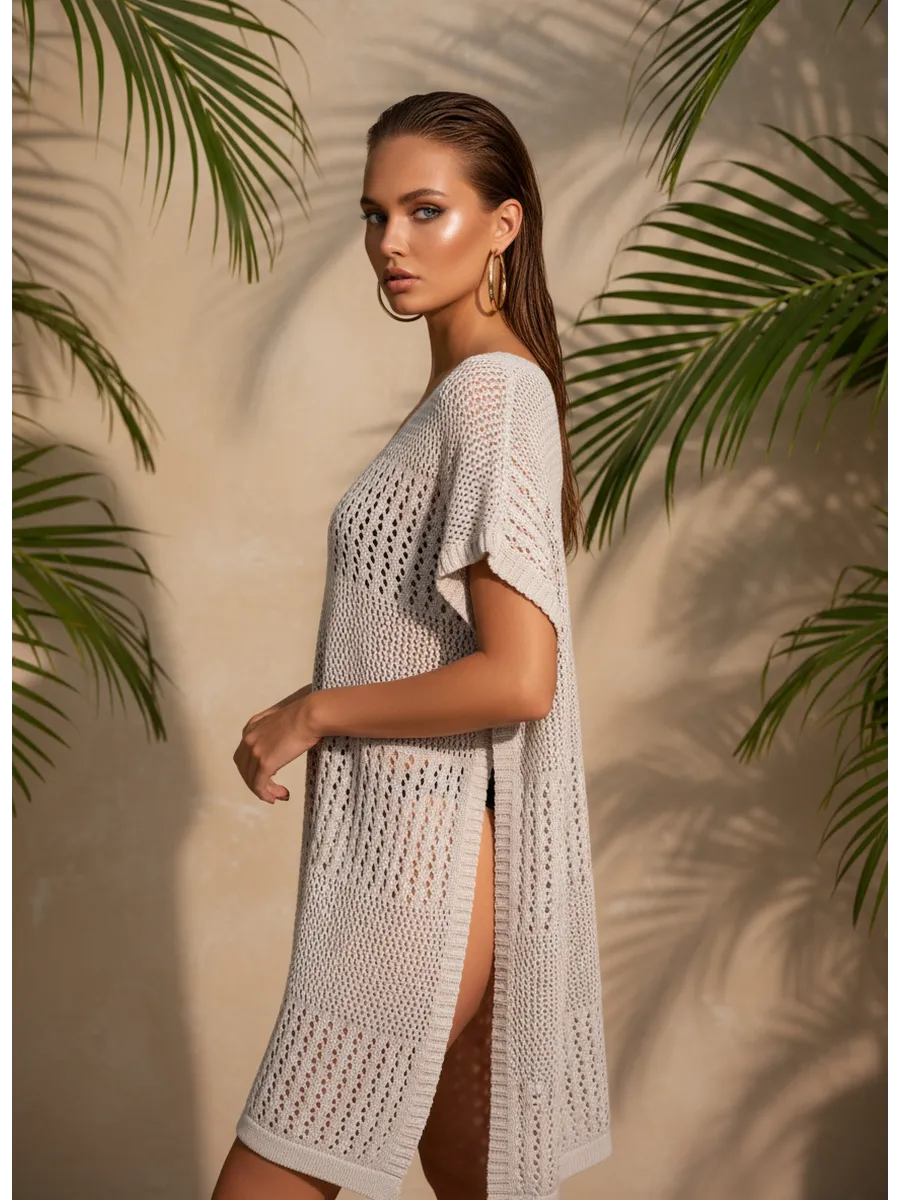 Пляжная туника накидка на купальник вязаная
